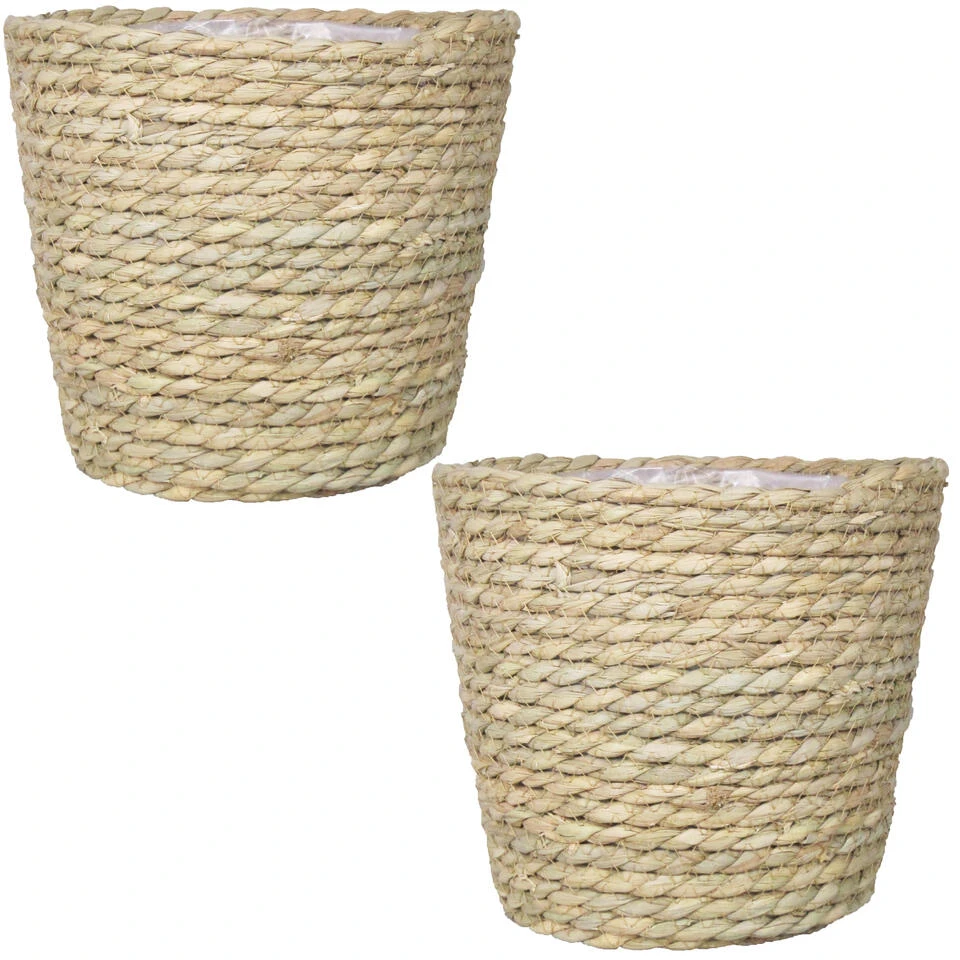 Naturel rotan mand van gedraaid touw/riet 19 cm. Een mooie rotan mand met plastic aan de binnenkant zodat het water er niet door gaat. De ronde mand heeft geen gaatjes aan de onderkant.
