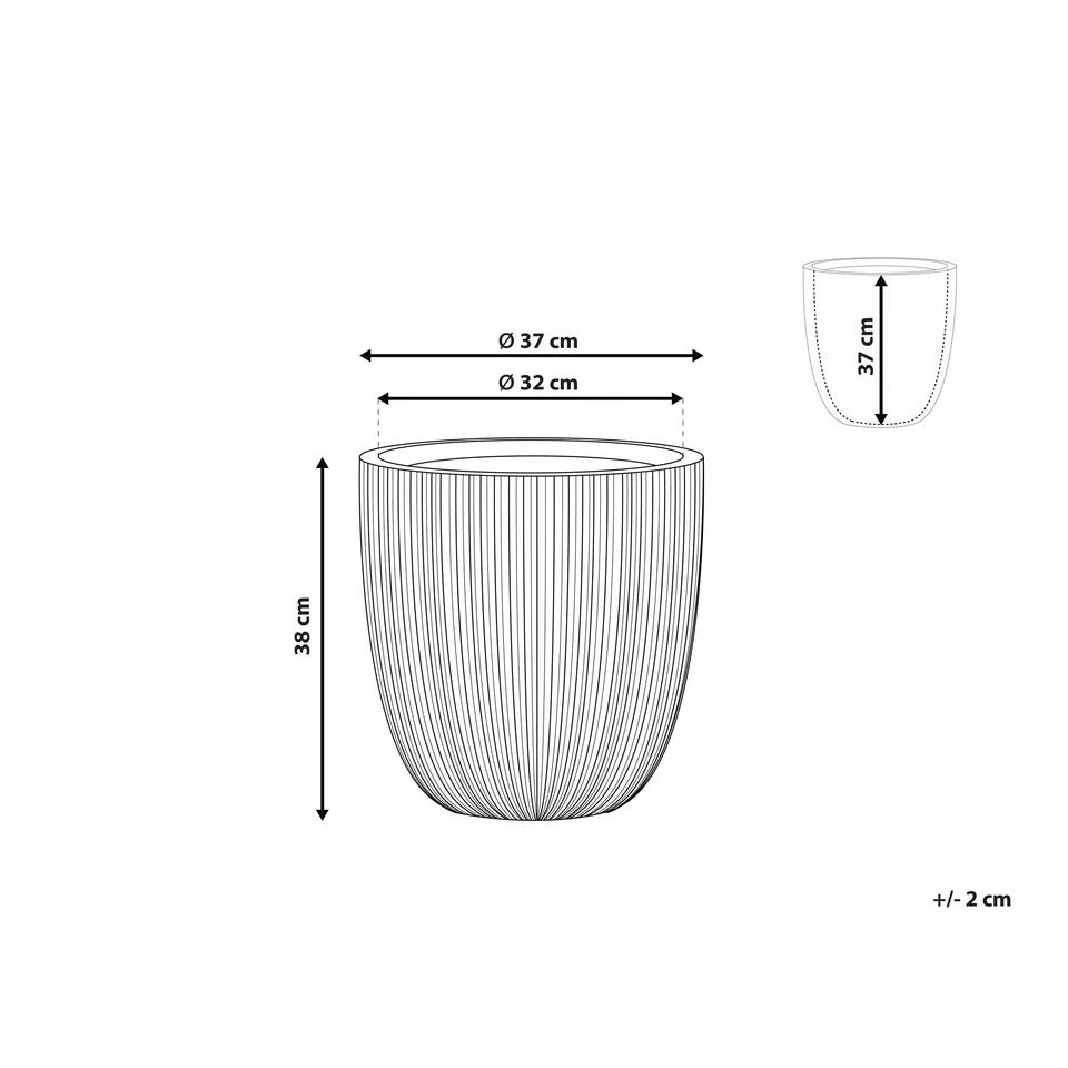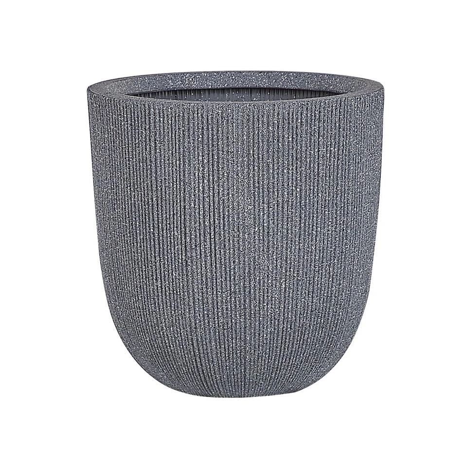 Grijze bloempot met gegroefde structuur. Bloempotten met planten geven vaak de finishing touch aan een interieur of de terrasopstelling. Deze ronde plantenpot met krijtstreep in een altijd mooie grijze kleur is een ideale oplossing voor zowel grote planten als voor tal van kleinere bloemen. Een natuurlijke compositie met deze bloempotten barst van de natuurlijke sfeer en geeft een decoratief karakter aan elk terras, balkon of zelfs een woonkamer. De weersbestendigheid van de polyresin zorgt ervoor dat de plantenbak er altijd verzorgd uitziet.