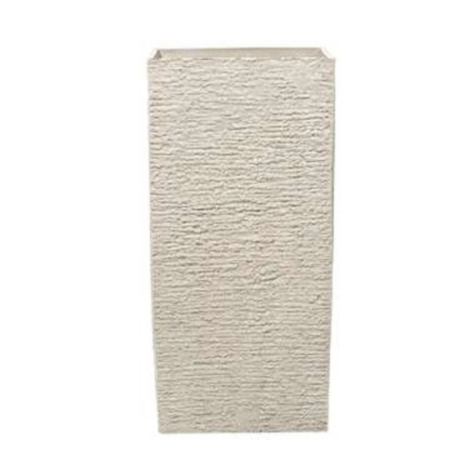 Hoge, vierkante plantenbak in beige, hoogte 81 cm. Een grote, vierkante bloempot is een populaire oplossing om het terras en de entree er wat sfeervoller uit te laten zien, maar staat ook erg leuk in kantoorruimten en openbare gebouwen. De lange, slanke vorm, het eenvoudige ontwerp en het beige, getextureerde oppervlak geven de bloempot een tijdloze look. De plantenbak is flexibel in gebruik zowel binnens- als buitenshuis.Wanneer het in de tuin of op het terras wordt gebruikt, kan de gemarkeerde plek gemakkelijk worden doorboord. Op elk moment kan overtollig water dan uit de pot stromen. Met een plug die bij de levering is inbegrepen, kan de opening indien nodig opnieuw worden gesloten. Het materiaal bestaat uit een mengsel van steen, polyresin en glasvezel en is daarom robuust, UV-bestendig, gemakkelijk in onderhoud en weerbestendig, zelfs bij zeer hoge of zeer lage temperaturen.