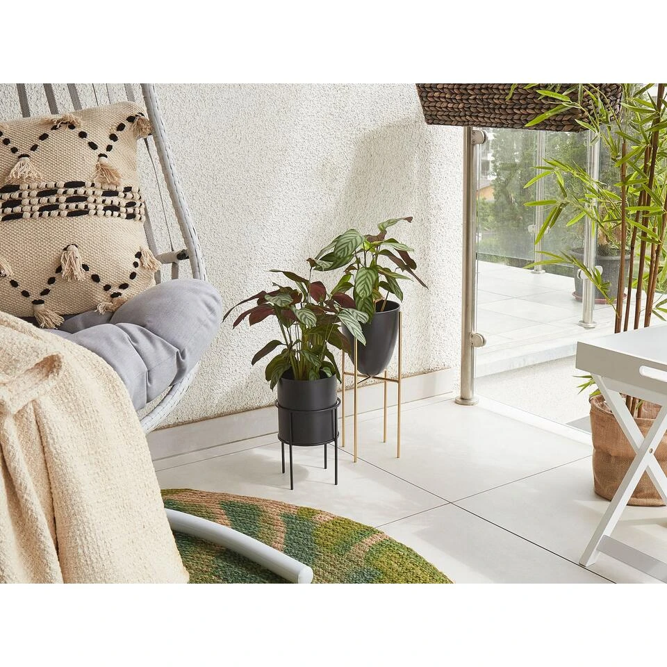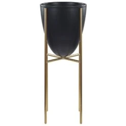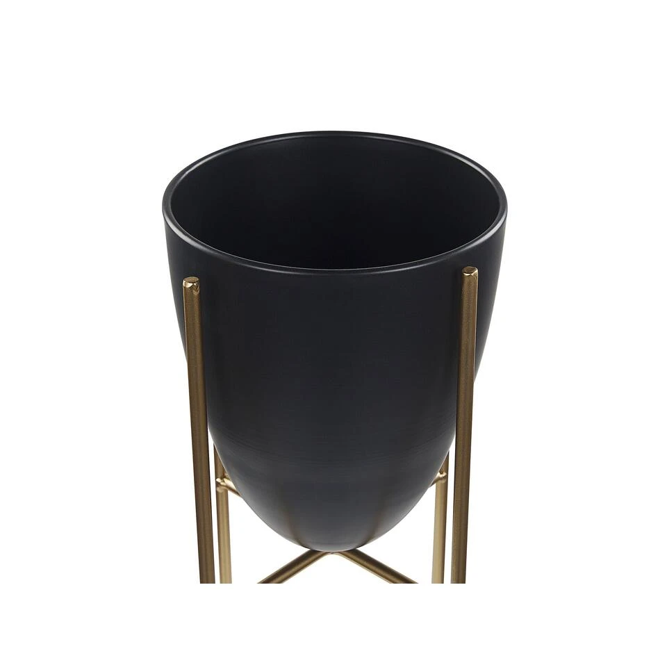 Decoratieve staande plantenbak. Laat je bloemen er nog mooier uitzien en plaats ze in deze stijlvolle plantenstandaard. Zijn decoratieve ijzeren metalen voet past perfect bij de zwarte pot en voegt een vleugje glamour toe aan je interieur. Zet de plantenpot op een vensterbank, dressoir of op je balkon, zet je favoriete plant erin en geniet van een prachtige decoratie.