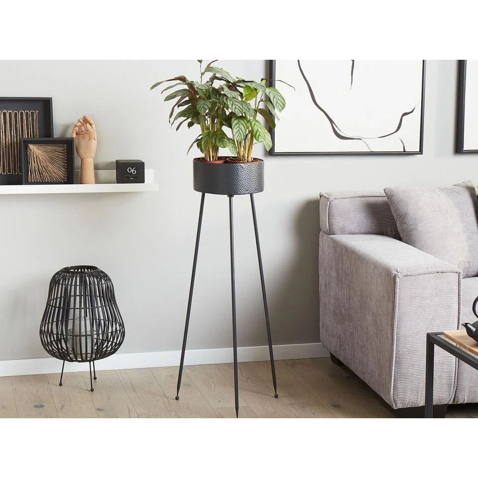 Decoratieve staande plantenbak. Maak je binnen- of buitenomgeving compleet door je planten in deze plantenstandaard te plaatsen en neer te zetten waar je maar wilt. De ijzeren driepootconstructie en zwarte afwerking met unieke structuur zorgen voor duurzaamheid en stabiliteit, maar geven je kamer toch een industrieel tintje. Je kunt de staande plantenbak gemakkelijk verplaatsen om je planten te verzorgen of je decor te herschikken.