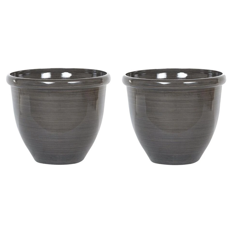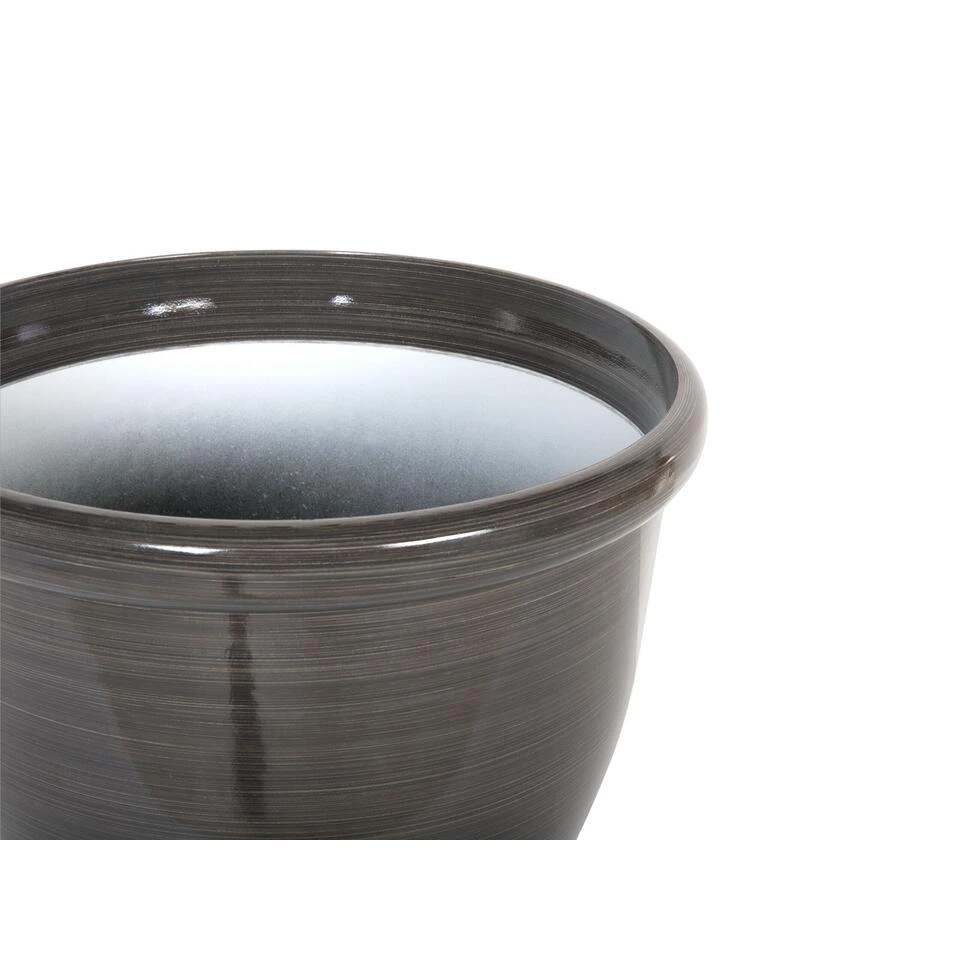 Ronde bloempotten in donkerbruine tint. Verbeter je binnen- of buitenruimte met deze stijlvolle, moderne bloempot. Met de ronde vorm en hoogglans finish, zal deze bloempot ongetwijfeld in verschillende woonruimtes, de tuin of op het balkon zijn plekje vinden. De pot is gemaakt van een steen en glasvezel-mengsel, is UV-bestendig en bestand tegen verschillende temperaturen. Als je deze pot buiten gaat gebruiken, vergeet dan niet een gaatje te boren op de gemarkeerde plaats in de bodem.