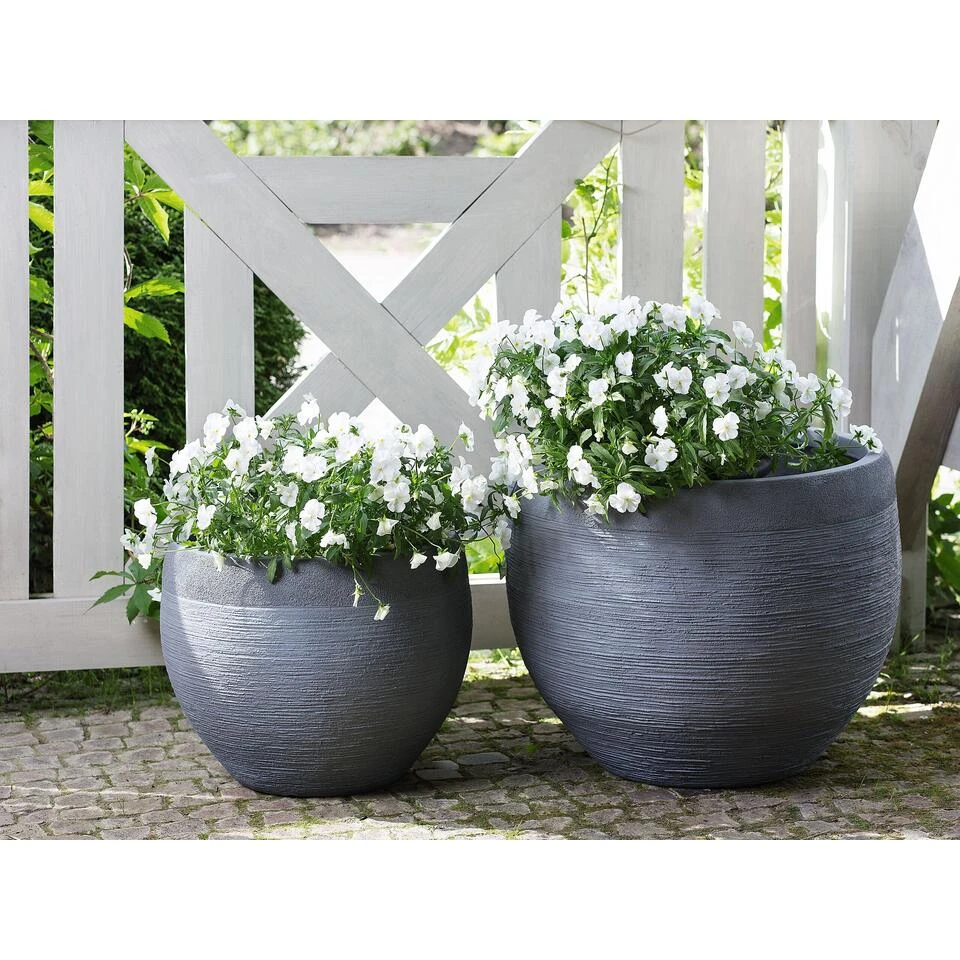 Rustieke ronde plantenbak voor buiten. Een elegante grijze stenen plantenbak is een perfecte match voor je buiten- en binnenruimte. Plaats hem in je tuin of op het terras om de uitstraling van je groen te onderstrepen. Schik je planten in een mooie compositie. De composiet van vezelklei en glasvezel maakt de plantenbakken UV- en waterbestendig en bestand tegen lage en hoge temperaturen.