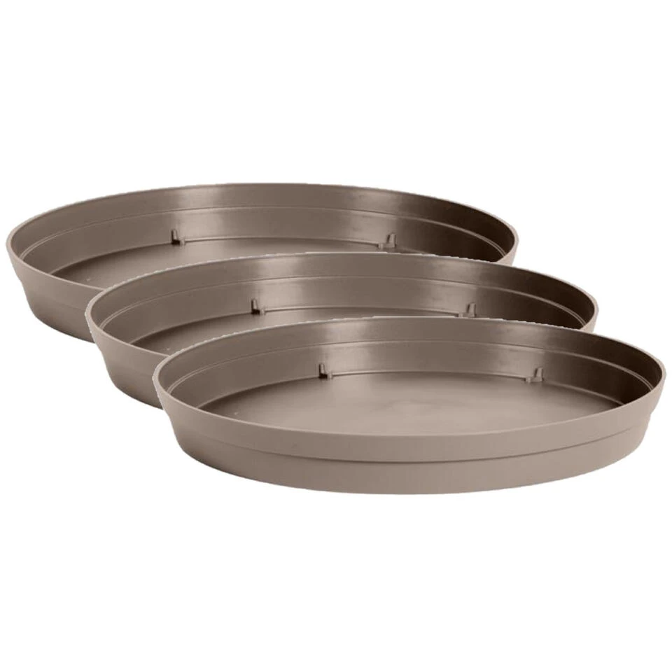 Bloempot onderschaal Toscane. De opvangschaal is geschikt voor een plantenpot met een diameter van 40 cm. Diameter opvangschaal: 28 cm. Materiaal: kunststof. Kleur: taupe.