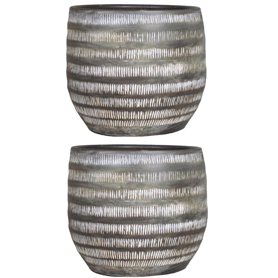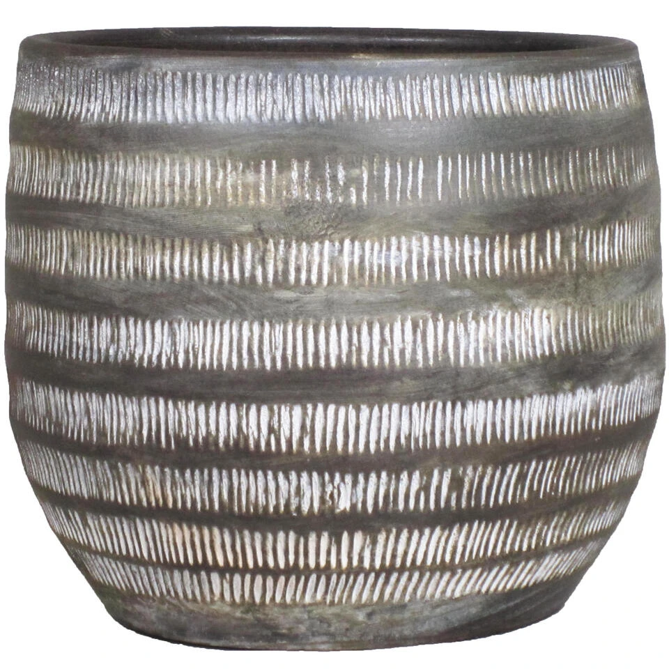 Floran Bloempot Lena – Bruin – Mat – Geribbeld – Keramiek – 17 X 14 Cm