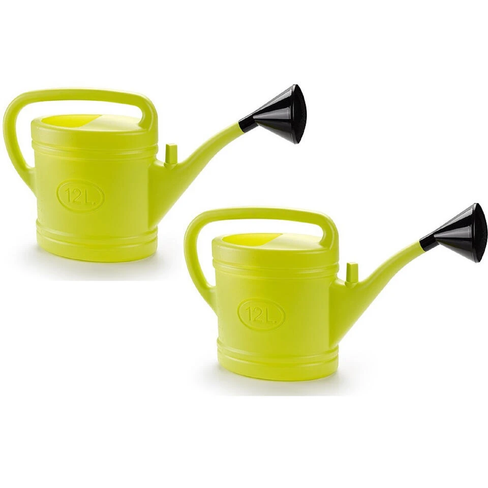 Stevige lichtgroene kunststof tuin planten gieter, geleverd met broeskop. Afmeting: ca. 70 x 19 x 41 cm. Inhoud: 12 liter. Tuinier benodigdheden planten water geven – Gieters.