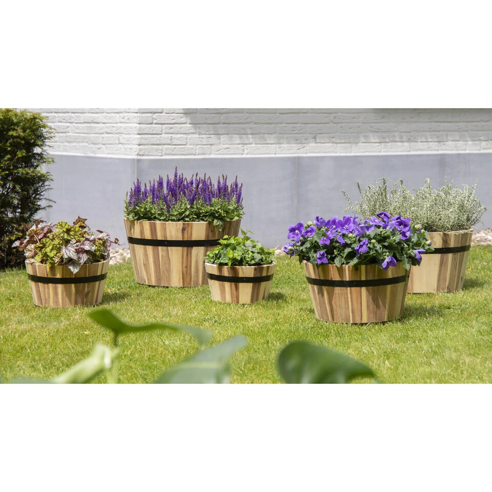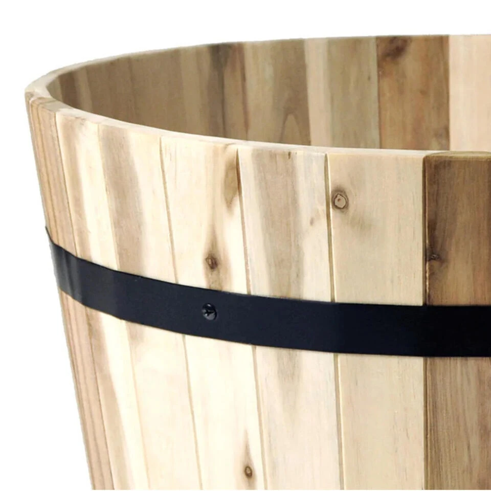 De plantenpot/bloempot uit de Acacia Barrel serie is gemaakt van acacia hout met een zwart metalen rand aan de buitenzijde. Het hout heeft een warme en natuurlijke uitstraling in een naturel bruine kleur. De emmer is zowel binnen als buiten te gebruiken en ideaal als plantenpot/bloempot voor bijvoorbeeld op het terras of in de tuin. Onder in de pot kan een gat gemaakt worden om het water weg te laten lopen. Formaat: Diameter 37 cm x Hoogte 26 cm.