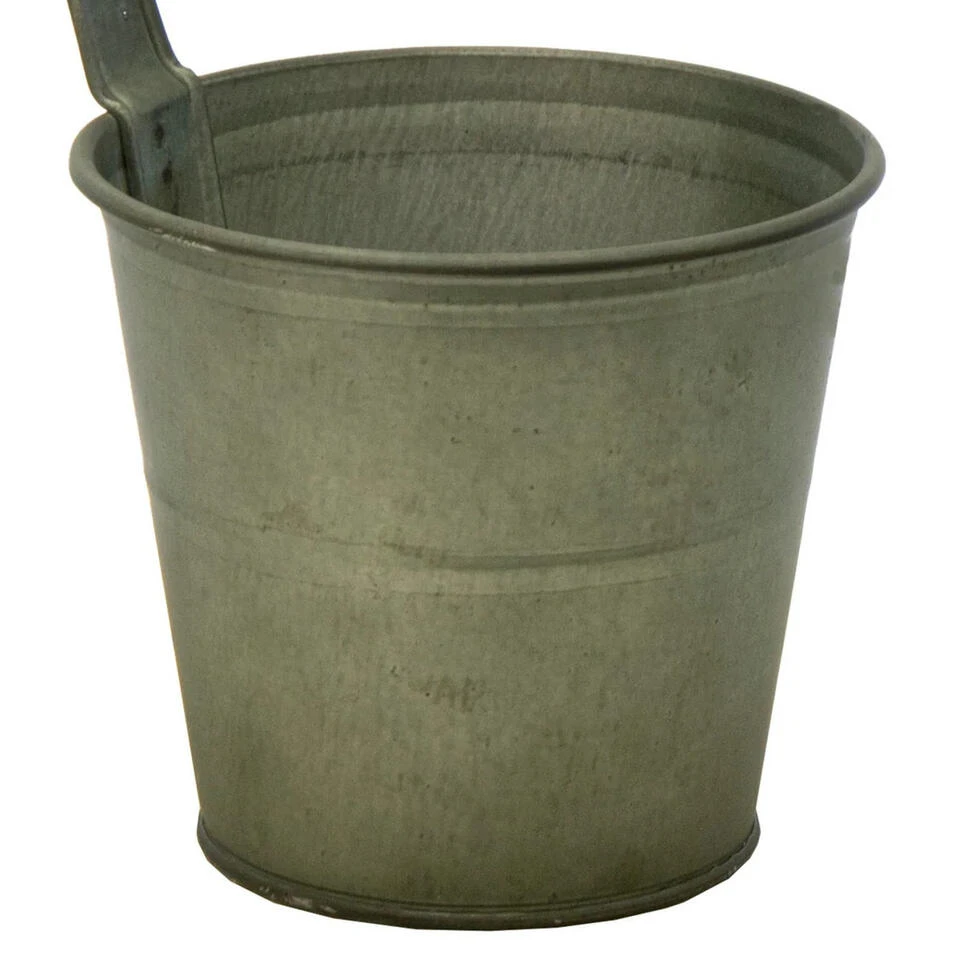 Bloempot/plantenpot gemaakt van zink in de kleur groen. De pot heeft de vorm van een emmertje en beschikt over een ophanghaak. Formaat emmertje: Diameter 16 cm x Hoogte 15 cm. De totale hoogte van de emmer + ophanghaak is 35 cm. De plantenpot/bloempot kan bijvoorbeeld aan uw schutting of balkonleuning worden geplaatst. Let op: zink is niet 100% gegarandeerd waterdicht.