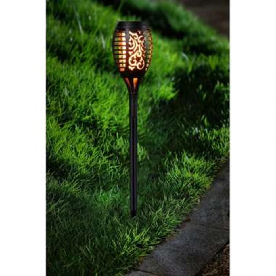 Tuinlamp solar fakkel met vlam effect. Deze tuinfakkel is 48,5 cm hoog en werkt op zonne-energie. De tuinfakkel wordt opgeladen door de zonnepanneel bovenop de fakkel. Aan de binnenkant van de fakkel zit een aan/uit knop. Materiaal: polystyreen.