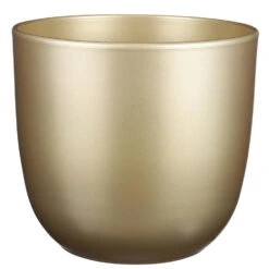 Bloempot in de kleur goud in een mooi glans motief keramiek voor een kamerplant H25 x D28 cm. Deze ronde bloempot uit de Tusca home basics serie past altijd goed in elke huis/interieur. Gemaakt van terracotta/keramiek. Diameter: 28 cm. Hoogte: 25 cm.