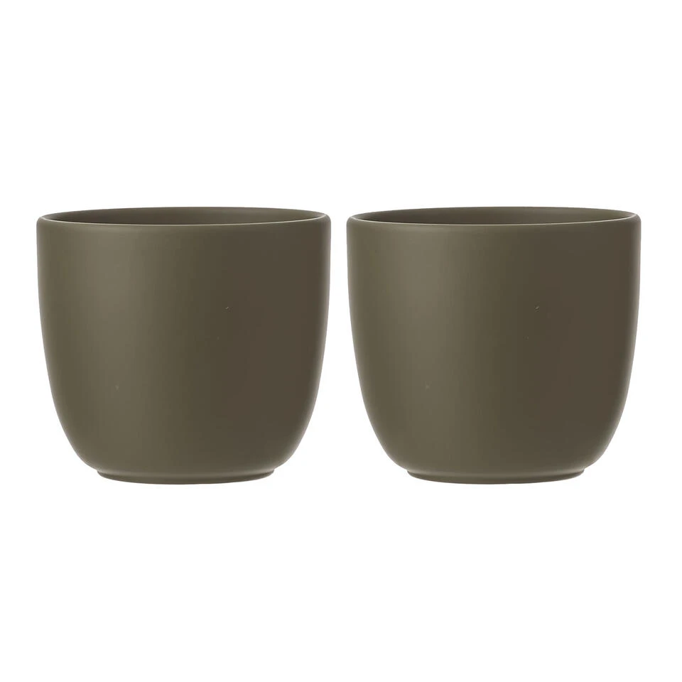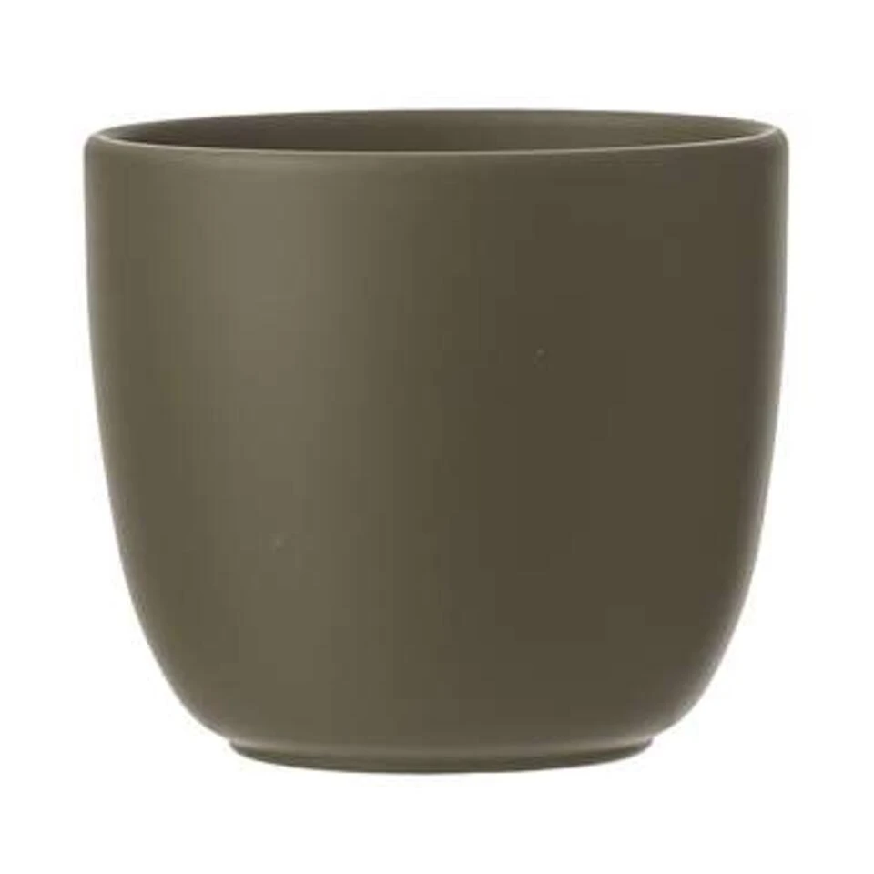 Bloempot in de kleur mat groen in een mooi mat motief keramiek voor een kamerplant H14 x D14.5 cm. Deze ronde bloempot uit de Tusca home basics serie past altijd goed in elke huis/interieur. Gemaakt van terracotta/keramiek. Diameter: 14.5 cm. Hoogte: 14 cm.