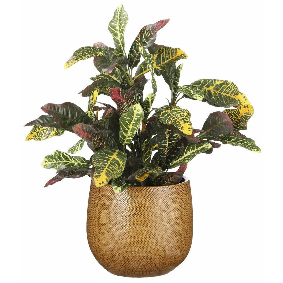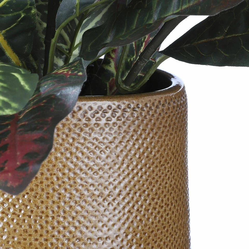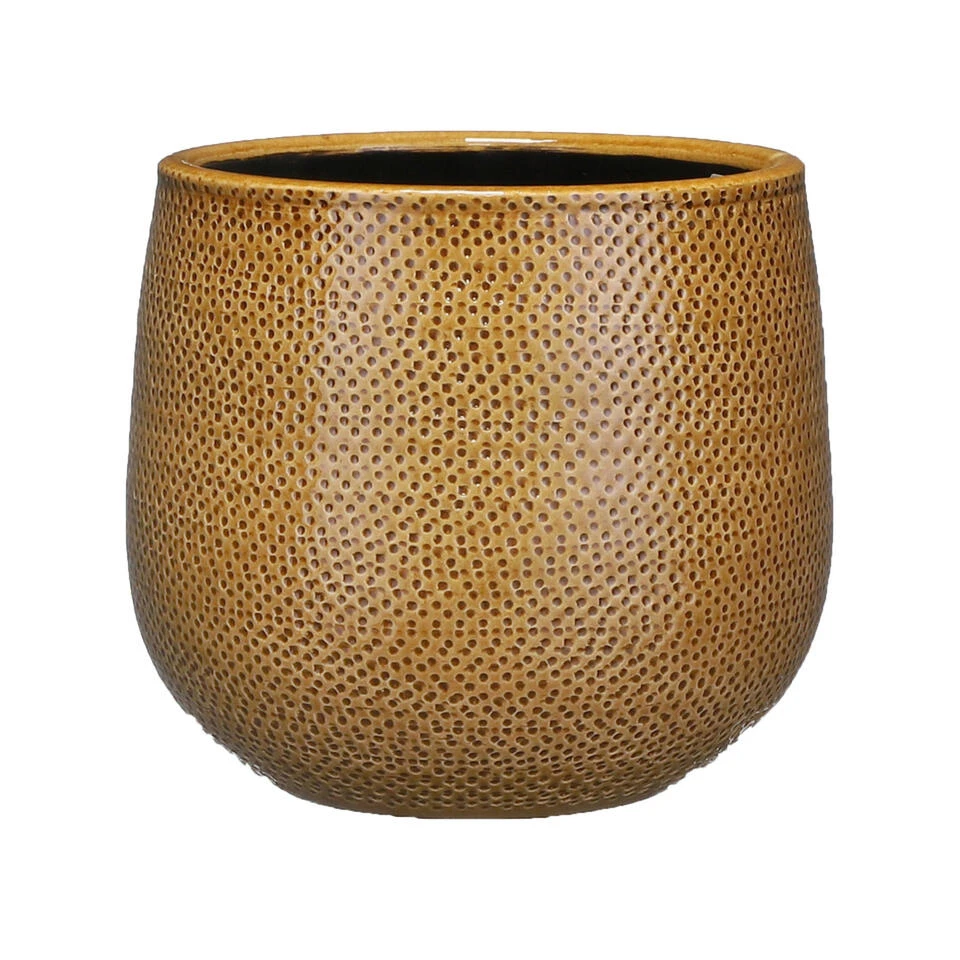 Mica Decorations Bloempot – Okergeel Met Relief – Keramiek – 21 Cm