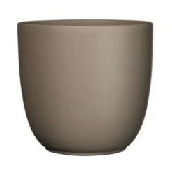 Bloempot in de kleur mat taupe bruin in een mooi mat motief keramiek voor een kamerplant H16 x D17 cm. Deze ronde bloempot uit de Tusca home basics serie past altijd goed in elke huis/interieur. Gemaakt van terracotta/keramiek. Diameter: 17 cm. Hoogte: 16 cm.