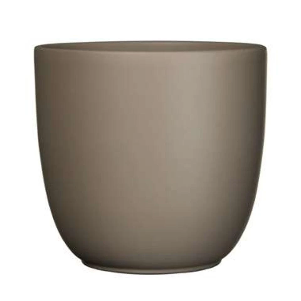 Bloempot in de kleur mat taupe bruin in een mooi mat motief keramiek voor een kamerplant H18.5 x D19.5 cm. Deze ronde bloempot uit de Tusca home basics serie past altijd goed in elke huis/interieur. Gemaakt van terracotta/keramiek. Diameter: 19.5 cm. Hoogte: 18.5 cm.