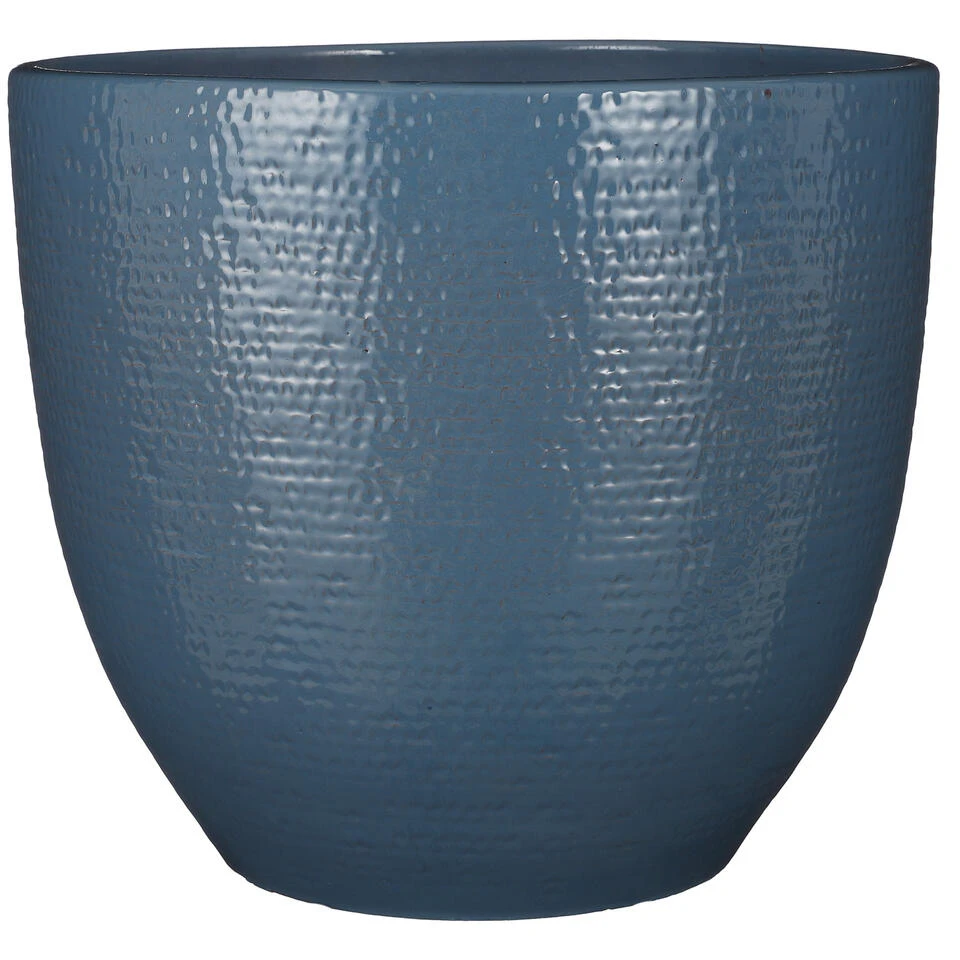 Mica Decorations Bloempot – Terracotta – Blauw Glans – D35/H32 Cm