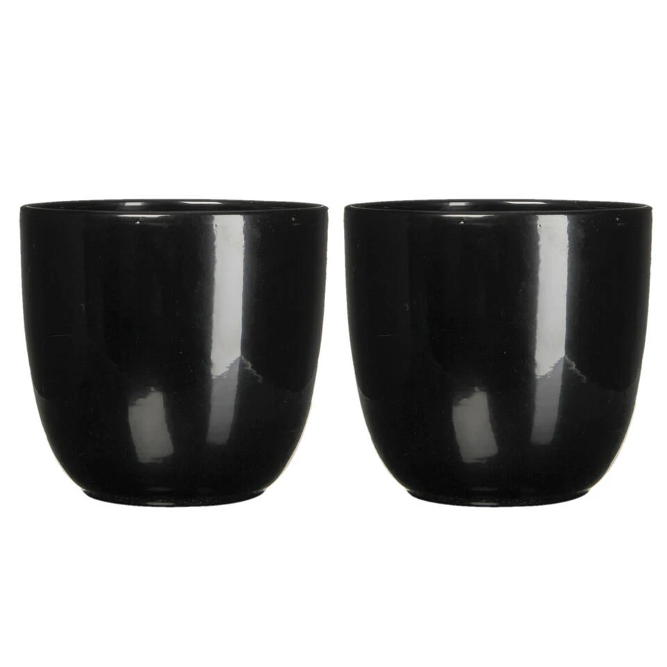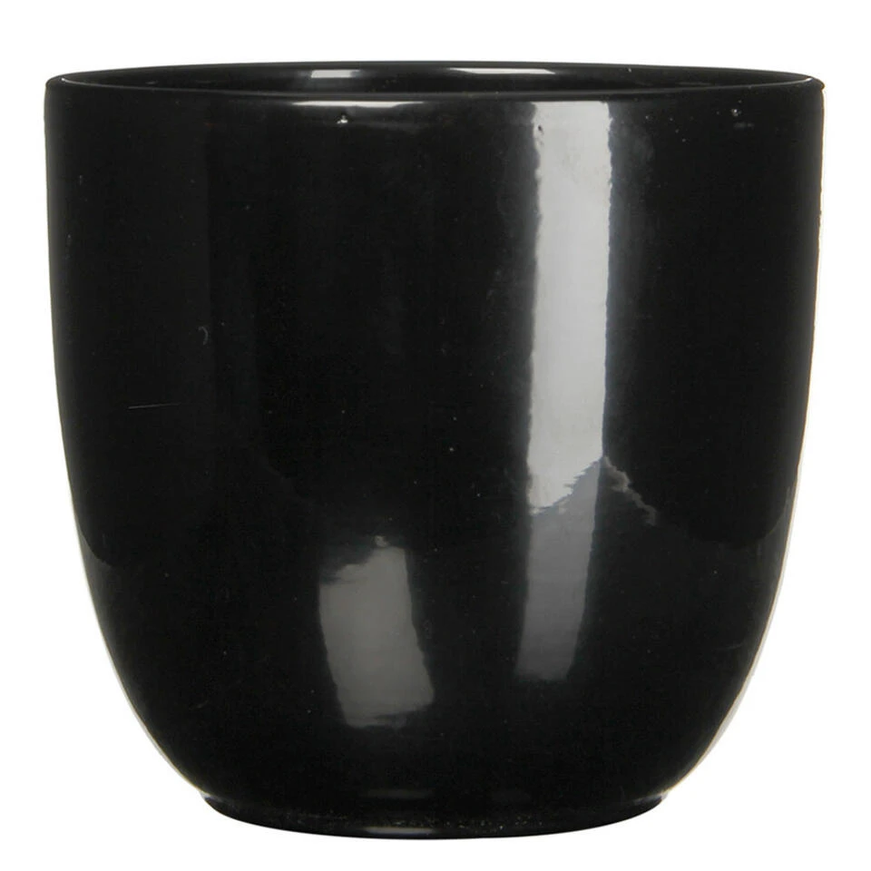 Bloempot in de kleur zwart in een mooi glans motief keramiek voor een kamerplant H16 x D17 cm. Deze ronde bloempot uit de Tusca home basics serie past altijd goed in elke huis/interieur. Gemaakt van terracotta/keramiek. Diameter: 17 cm. Hoogte: 16 cm.