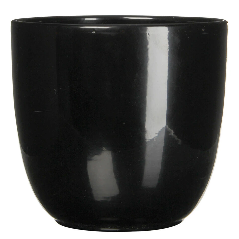 Bloempot in de kleur zwart in een mooi glans motief keramiek voor een kamerplant H20 x D22.5 cm. Deze ronde bloempot uit de Tusca home basics serie past altijd goed in elke huis/interieur. Gemaakt van terracotta/keramiek. Diameter: 22.5 cm. Hoogte: 20 cm.