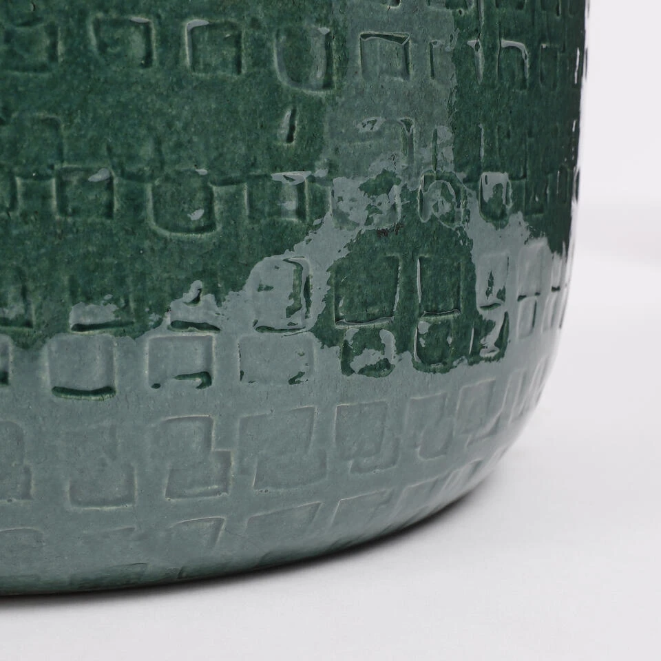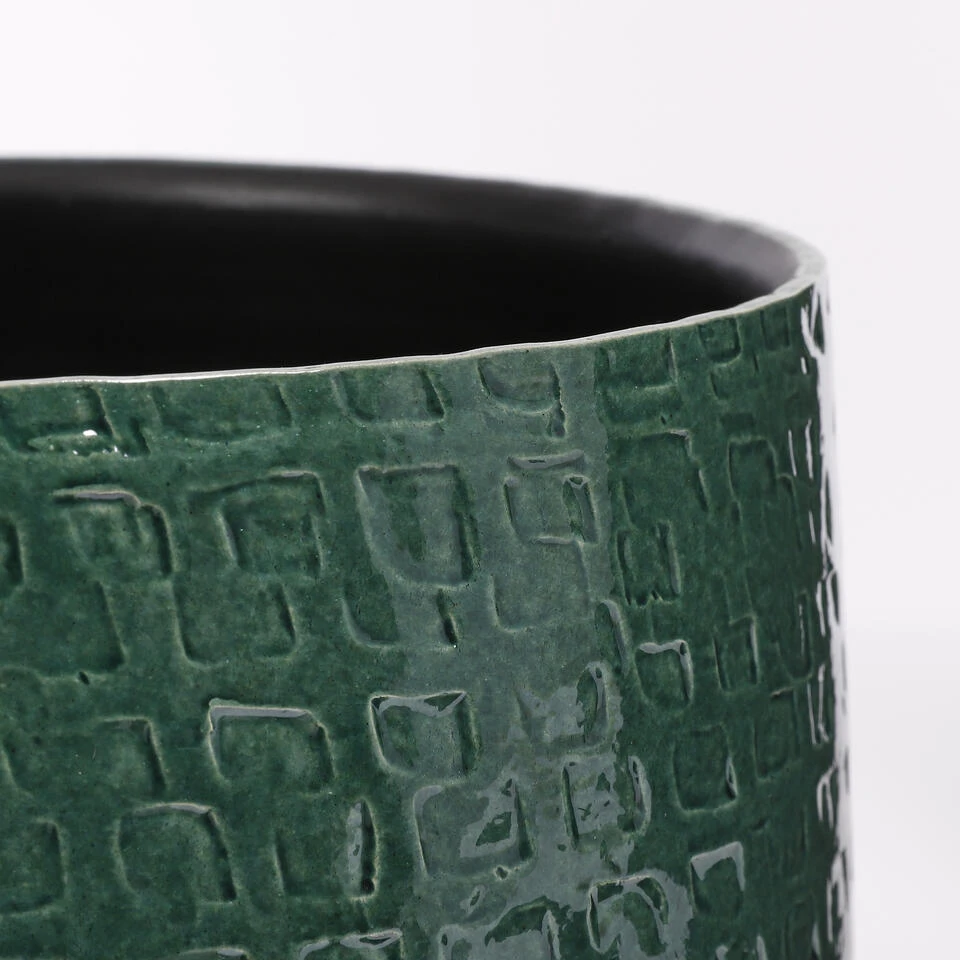 De mooie afwerking en de glanzende finish maken de Floyd bloempot van Mica Decorations echt een aanwinst voor het interieur. De pot wordt gemaakt van keramiek en is afkomstig uit Portugal. Hier wordt met veel zorg en aandacht met de hand een subtiel reliëf patroon aangebracht. Elk item is uniek! Door de hoogglans finish komt deze mooie afwerking extra goed uit de verf. Zeker in combinatie met de trendy, donkergroene kleur. Zo weet deze pot in elk huis wel een plekje te vinden! De Floyd serie bestaat uit potten, schalen en vazen in verschillende kleuren en maten die goed met elkaar te combineren zijn. Deze bloempot is groen en heeft een afmeting van H21 x Ø24 cm.