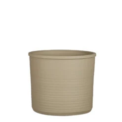 Bloempot Momo van Mica Decorations heeft een aardse basis waar het design een industriële draai aan geeft. Met de verticale ribbels doet de vormgeving namelijk denken aan een blik. Erg modern! De taupe kleur zorgt hierbij voor een neutrale uitstraling die in elk interieur past. De pot wordt gemaakt van terracotta klei in Portugal en helemaal met de hand afgewerkt. Hierdoor heeft elke pot zijn eigen, unieke uitstraling. De Momo bloempotten zijn verkrijgbaar in verschillende kleuren en maten. Dit taupe kleurige model heeft een afmeting van H25 x Ø28 cm.