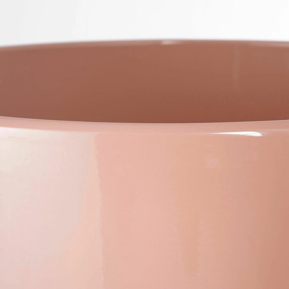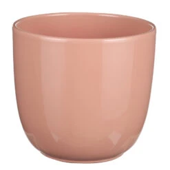 Plantenpot/bloempot van keramiek in de kleur Lichtroze in strakke glanzende uitvoering. Diameter 17 cm en hoogte 16 cm. Mooie bloempotten voor binnen gebruik. Serie: Tusca. De bloempot met een prachtige glans finish aan de buitenzijde is van Duits keramiek. Tip: zet een schotel onder de pot, of plaats een binnenpot/hoes om eventueel lekken tegen te gaan. Potten van gebakken steen zijn niet altijd 100% waterdicht.