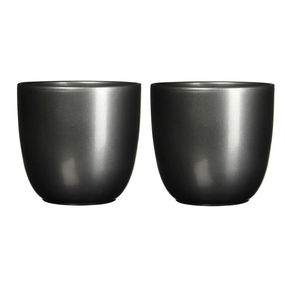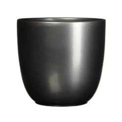 Bloempot in de kleur glans antraciet grijs in een mooi glans motief keramiek voor een kamerplant H11 x D12 cm. Deze ronde bloempot uit de Tusca home basics serie past altijd goed in elke huis/interieur. Gemaakt van terracotta/keramiek. Diameter: 12 cm. Hoogte: 11 cm.