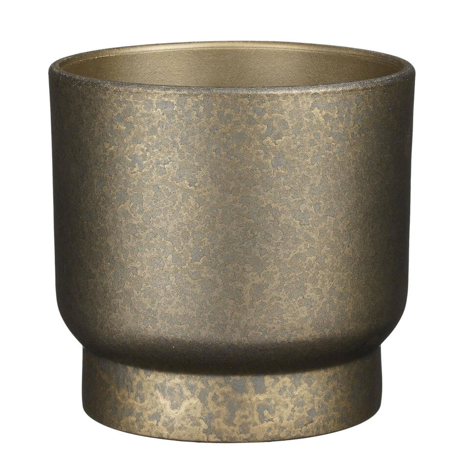 Plantenpot/bloempot van terracotta in de kleur goud met een modern relief flakes patroon. Diameter 22 cm en hoogte 20 cm. Stijlvolle bloempotten voor binnen gebruik. Serie: Sintra. De zeer mooie potten met prachtige buitenzijde zijn met de hand gemaakt in Portugal. Derhalve is geen pot exact hetzelfde en hebben de bloempotten een echt karakter. Materiaal: Terracotta. Tip: zet een schotel onder de pot om eventueel lekken tegen te gaan. Potten van steen zijn niet 100% waterdicht.