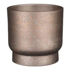 Plantenpot/bloempot van terracotta in de kleur koper met een modern relief flakes patroon. Diameter 22 cm en hoogte 20 cm. Stijlvolle bloempotten voor binnen gebruik. Serie: Sintra. De zeer mooie potten met prachtige buitenzijde zijn met de hand gemaakt in Portugal. Derhalve is geen pot exact hetzelfde en hebben de bloempotten een echt karakter. Materiaal: Terracotta. Tip: zet een schotel onder de pot om eventueel lekken tegen te gaan. Potten van steen zijn niet 100% waterdicht.
