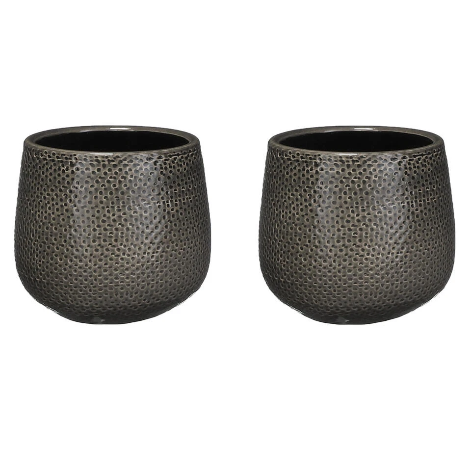 Bloempot in de kleur antraciet van een sjiek geribbeld motief keramiek voor een kamerplant H12 x D14 cm. Deze ronde bloempot uit de Gabriel serie met schitterende afwerking geeft een boost aan uw interieur. Gemaakt van terracotta/keramiek. Diameter: 14 cm. Hoogte: 12 cm.