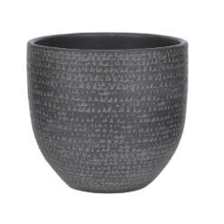 Plantenpot/bloempot van terracotta in de kleur zwart/grijs met een modern relief flakes patroon. Diameter 20 cm en hoogte 18 cm. Stijlvolle bloempotten voor binnen gebruik. Serie: Carrie. De zeer mooie potten met prachtige buitenzijde zijn met de hand gemaakt in Portugal. Derhalve is geen pot exact hetzelfde en hebben de bloempotten een echt karakter. Materiaal: Terracotta. Tip: zet een schotel onder de pot om eventueel lekken tegen te gaan. Potten van steen zijn niet 100% waterdicht.
