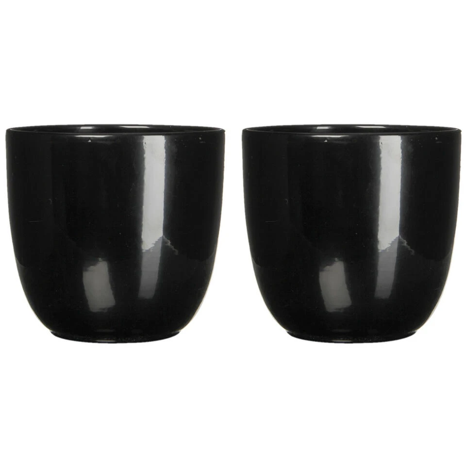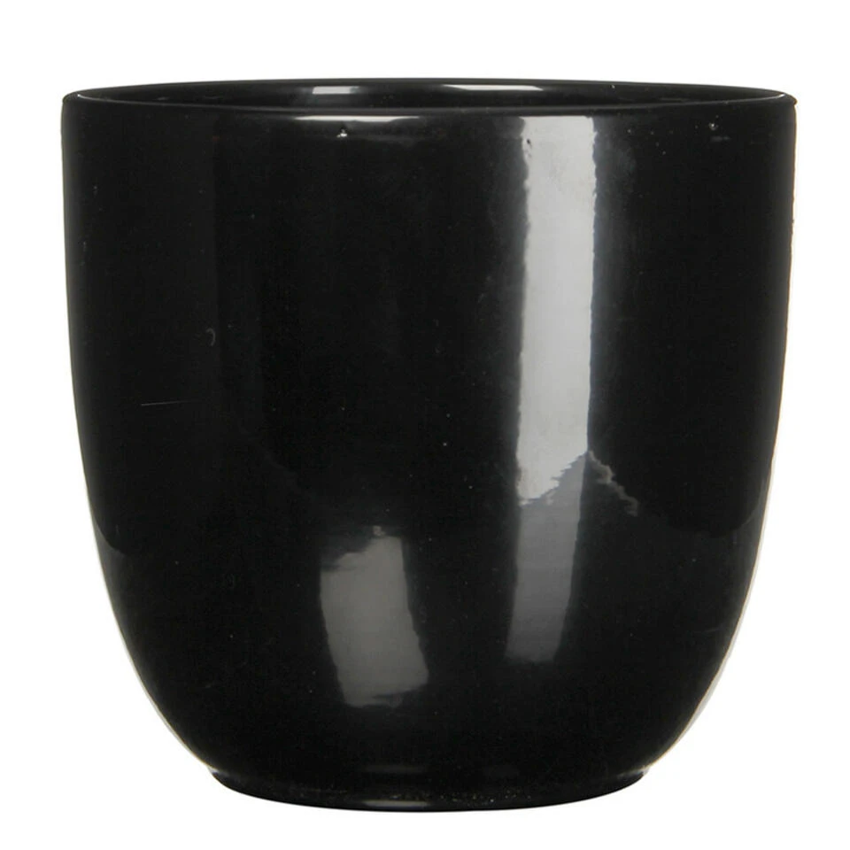 Bloempot in de kleur zwart in een mooi glans motief keramiek voor een kamerplant H14 x D14.5 cm. Deze ronde bloempot uit de Tusca home basics serie past altijd goed in elke huis/interieur. Gemaakt van terracotta/keramiek. Diameter: 14.5 cm. Hoogte: 14 cm.