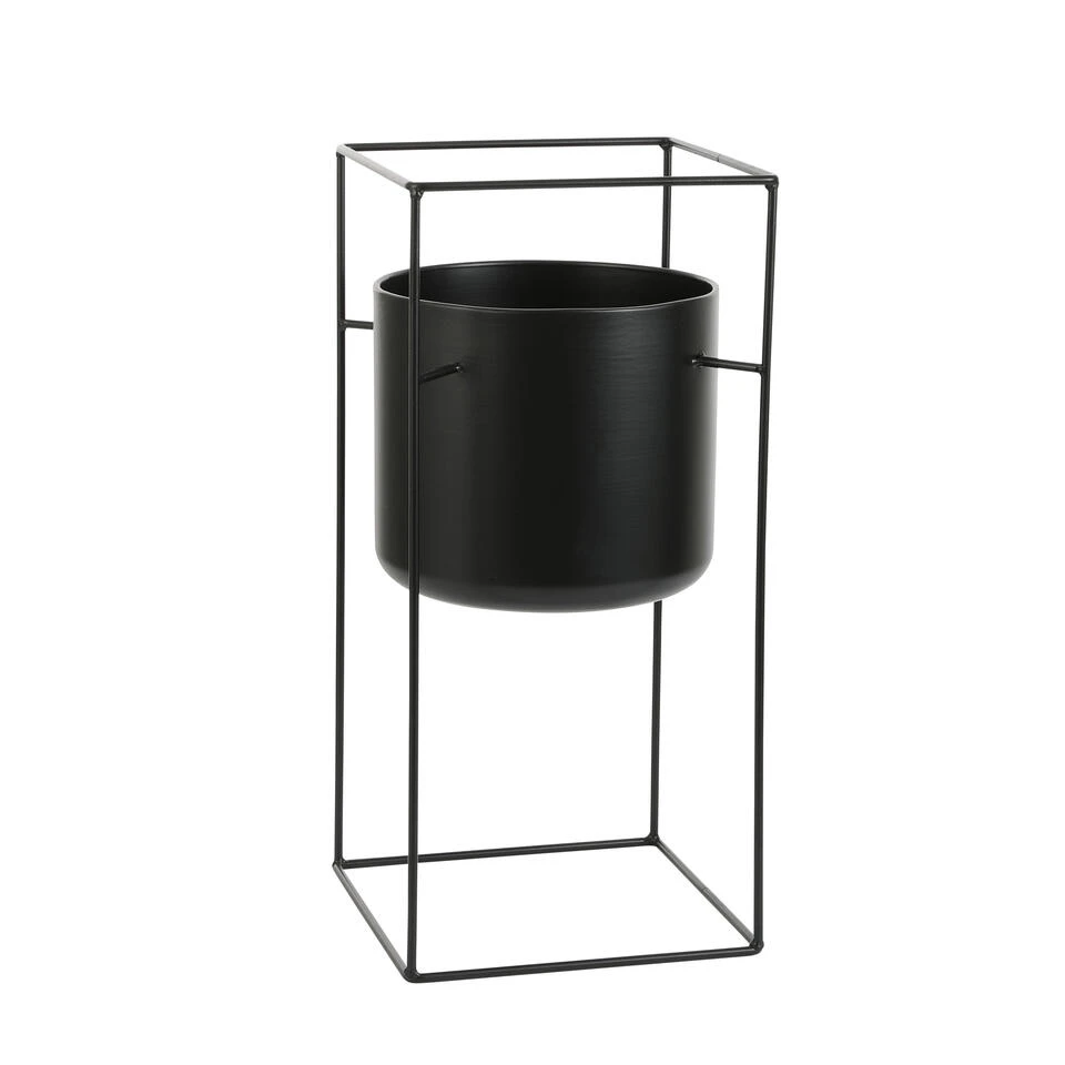 Met de Porte bloempot op standaard uit de collectie van Mica Decorations geef je elke bloem of plant een unieke look. De ronde pot hangt in een rechthoekig frame van metaal, waardoor een leuk lijnenspel ontstaat. Daarnaast zorgt het zwarte metaal voor een stoere, moderne uitstraling die met van alles te combineren is. Kies een plant en creëer jouw eigen combinatie! De afmetingen van het design zijn L26 x B26 x H55 cm, waardoor elke plant mooi van de grond komt. Leuk om te combineren met andere plantenstandaards om een leuk plantenhoekje te creëren!
