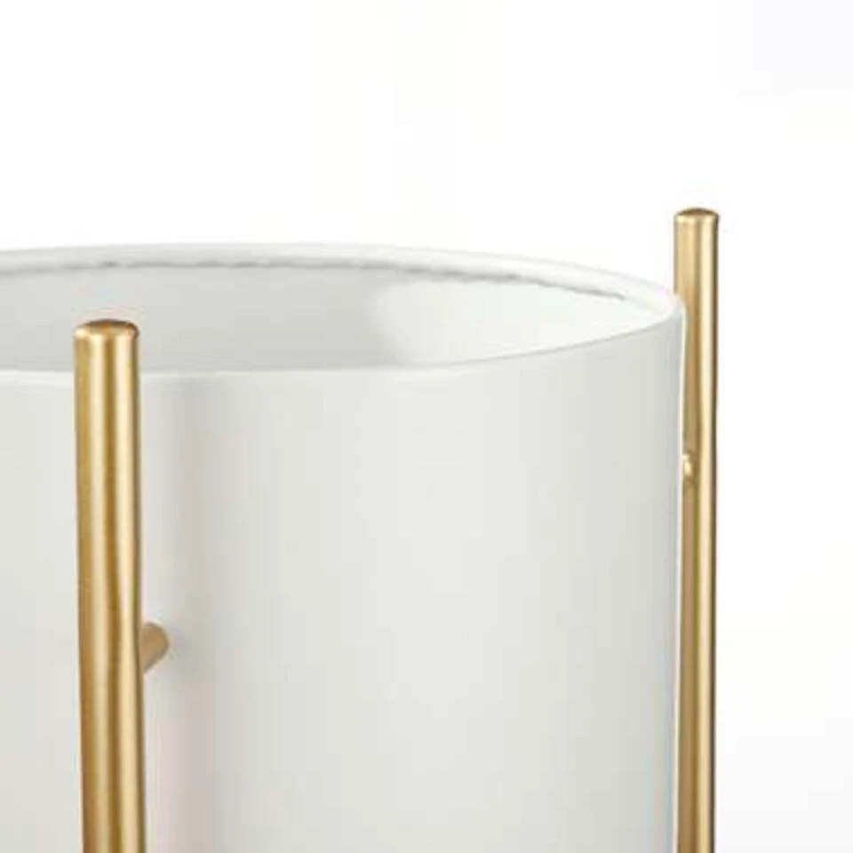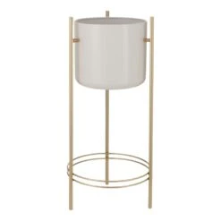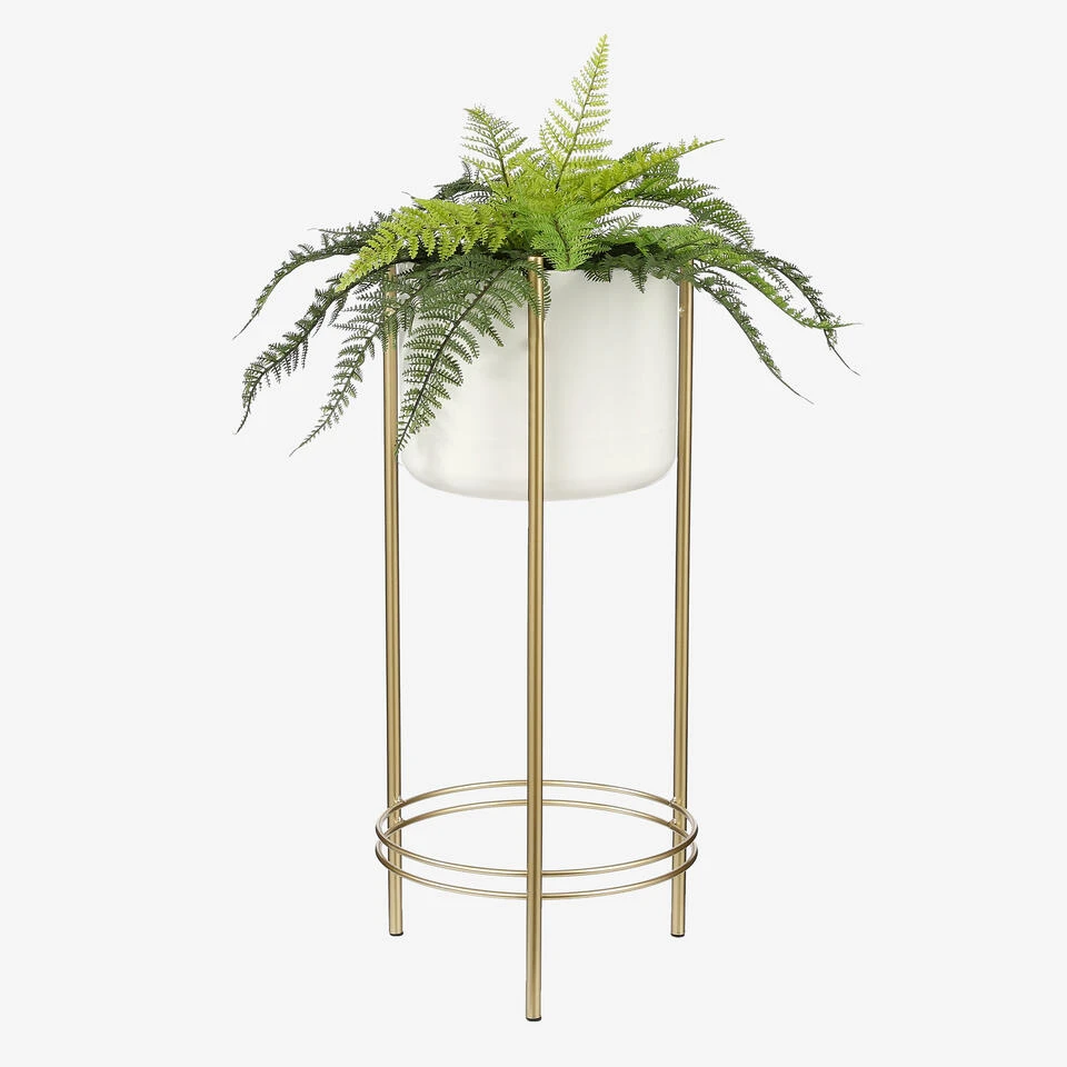 Zet je favoriete plant letterlijk op een voetstuk met de Sverre pot op standaard van Mica Decorations. De handgemaakte bloempot heeft een neutrale witte kleur met een mooie glans. Hij staat stevig bevestigd op een hoge, metalen standaard in een gouden kleur. Erg trendy en mooi voor in elk interieur! De pot springt er met plant en al letterlijk bovenuit, dus creëer je eigen mooie combinatie. De Sverre potten zijn verkrijgbaar in verschillende kleuren en maten. Leuk om met elkaar te combineren! Dit witte model is inclusief standaard 66 cm hoog en heeft een diameter van 28 cm.