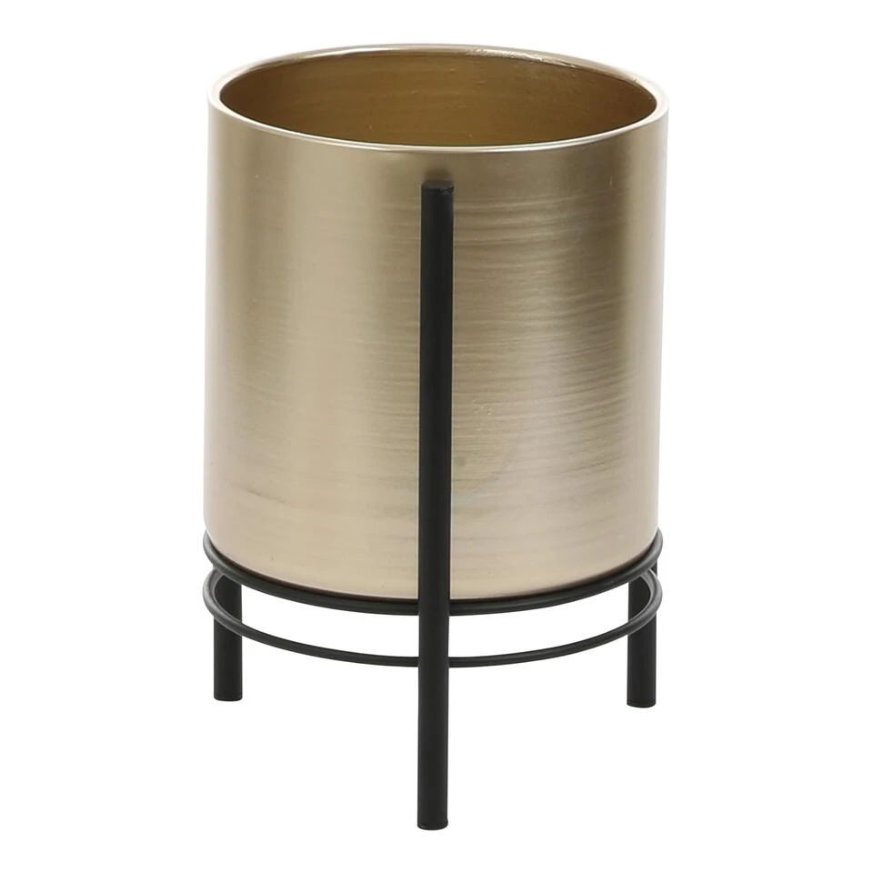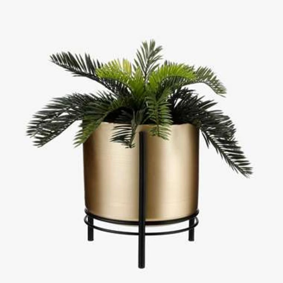 Zet je favoriete plant letterlijk op een voetstuk met de Sverre pot op standaard van Mica Decorations. De handgemaakte bloempot heeft een trendy, gouden kleur en staat stevig bevestigd op een zwarte standaard van metaal. Een mooi contrast helemaal in de trend van nu! Doordat de pot net even van de grond komt, springt hij er met plant en al letterlijk bovenuit. De Sverre potten zijn verkrijgbaar in verschillende kleuren en maten. Leuk om met elkaar te combineren! Dit goudkleurige model is 28 cm hoog en heeft een diameter van 19 cm.
