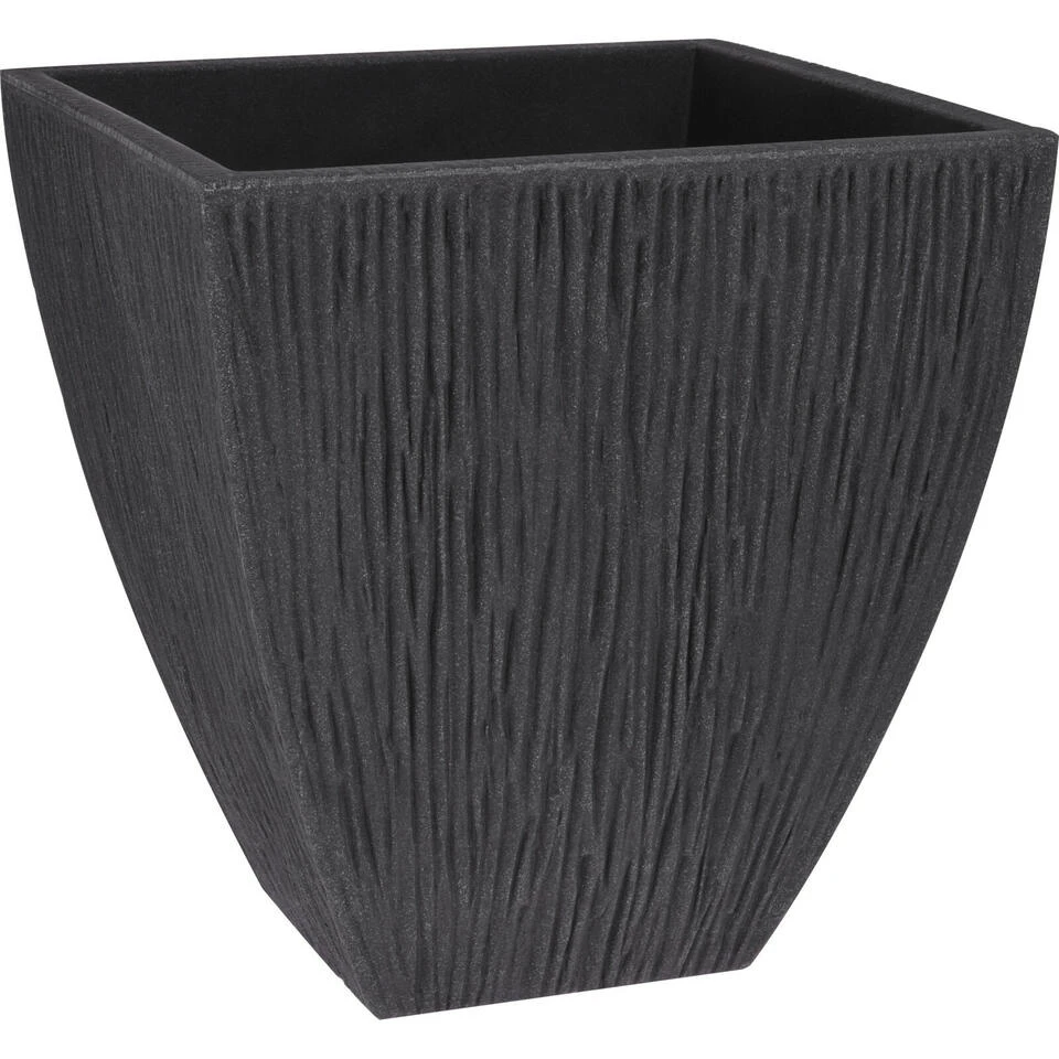 Plantenpot/bloempot gemaakt van kunststof(Polyethyleen) in de kleur antraciet grijs met relief lava strepen aan de buitenzijde. Deze prachtige bloempot uit de Pompei serie is een schitterende toevoeging aan uw tuin/terras. De pot is enkelwandig. Voor buiten gebruik. Vierkante vorm.