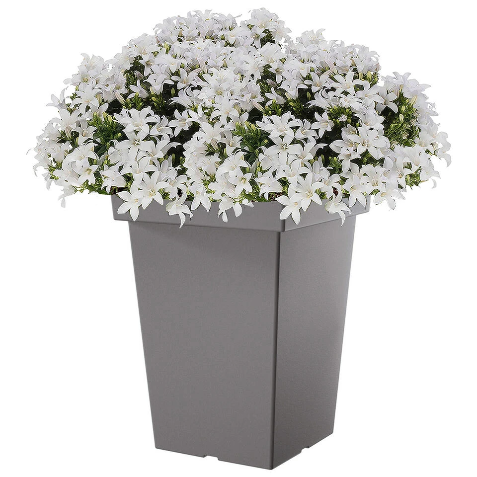 Hoge kunststof plantenpot/bloempot Square 19 cm/hoogte 29 cm steengrijs. Geschikt voor buiten en binnen. Vorstbestendig ja. Mooie plantenpotten voor in de tuin, balkon, kantoor of in de woonkamer.