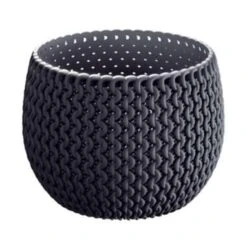 1x Stuks ronde antraciet Splofy bloempotten/plantenpotten 1,4 liter. Kras en stootvaste bloempotten/plantenbakken met de uitstraling van zachte, grof gebreide wol. De potten hebben geen afwateringsgaten, en zijn geschikt voor binnen en buiten gebruik. Serie: Splofy bowl. Formaat: diameter: ca 18 cm. Hoogte: ca 13,6 cm. Inhoud: 1,4 liter. Materiaal: kunststof. Tuin/woonkamer decoratie bloempot/plantenbak.
