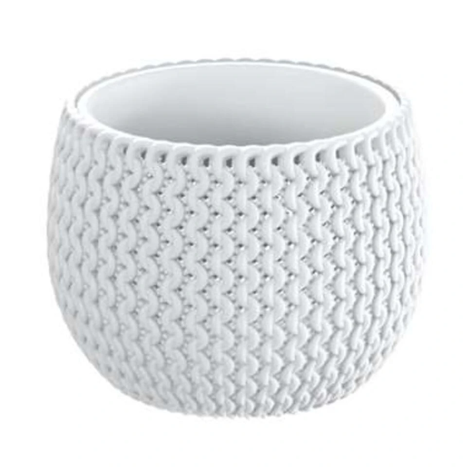 1x Stuks ronde witte Splofy bloempotten/plantenpotten 1,4 liter. Kras en stootvaste bloempotten/plantenbakken met de uitstraling van zachte, grof gebreide wol. De potten hebben geen afwateringsgaten en zijn geschikt voor binnen en buiten gebruik. Serie: Splofy bowl. Formaat: diameter: ca 18 cm. Hoogte: ca 13,6 cm. Inhoud: 1,4 liter. Materiaal: kunststof. Tuin/woonkamer decoratie bloempot/plantenbak.