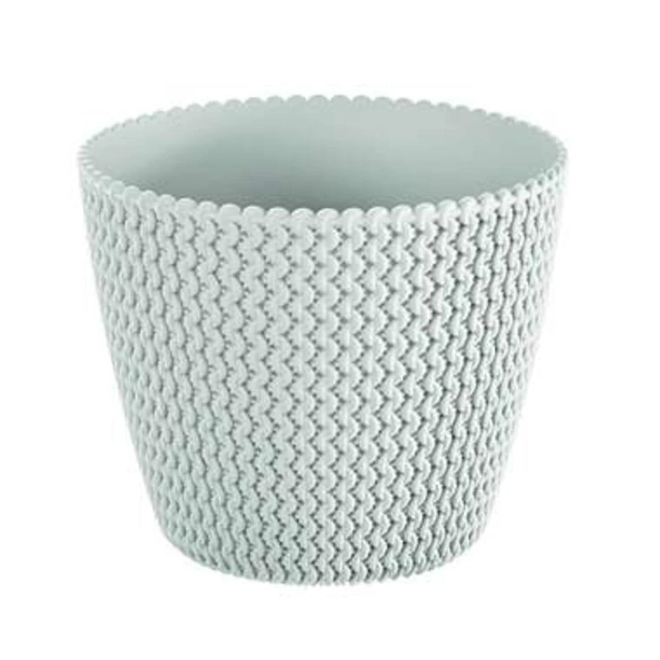 1x Kunststof Splofy bloempotten/plantenpotten wit 26 cm. Kras en stootvaste bloempot/plantenpot met de uitstraling van zachte, grof gebreide wol. Formaat: diameter bovenkant: ca 25,9 cm. Hoogte: ca. 22 cm. Materiaal: kunststof. De potten zijn geschikt voor binnen en buiten gebruik.