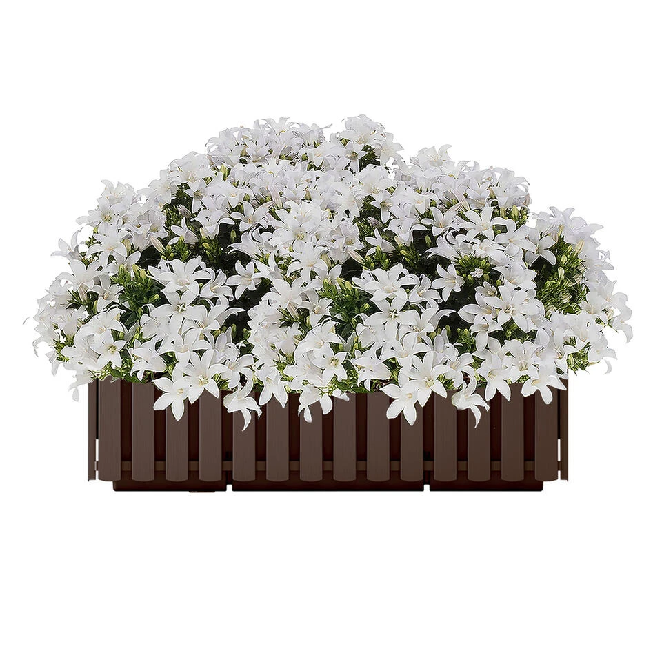 Fence-look plantenbak/bloembak kunststof 58 x 18 x 16 cm houtbruin. De houtbruine kleur en natuurlijke uitstraling passen perfect bij elke omgeving. De bak kan zowel binnen als buiten gebruikt worden en kan eenvoudig aan een hek of muur worden bevestigd. Met deze praktische en stijlvolle bak geef je op een makkelijke manier kleur aan je tuin of balkon!
