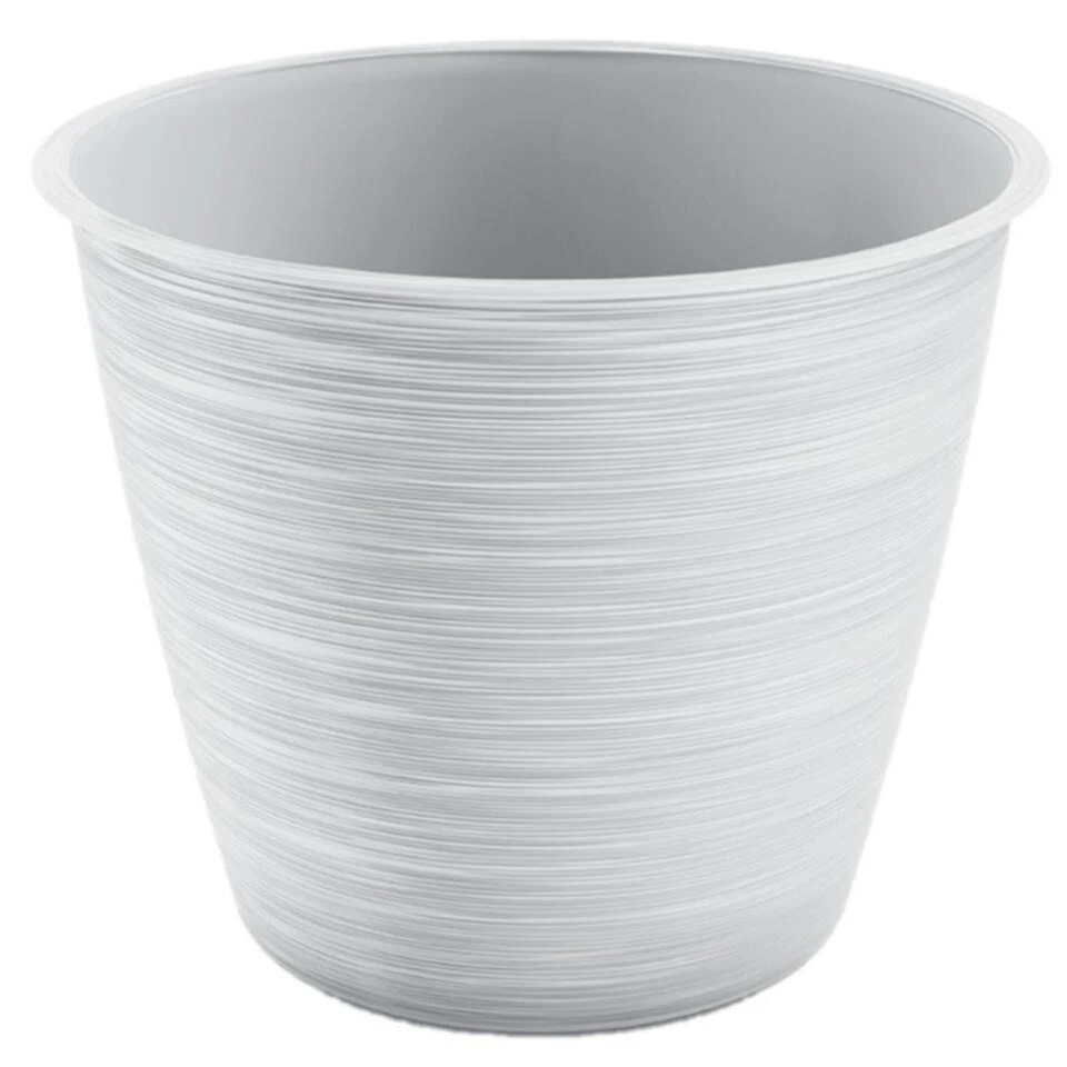 Stijlvolle kunststof plantenpot/bloempot dia 20 cm/hoogte 17 cm Paintstripe wit. Geschikt voor buiten en binnen. Vorstbestendig ja. Mooie plantenpotten voor in de tuin, balkon, kantoor of in de woonkamer.