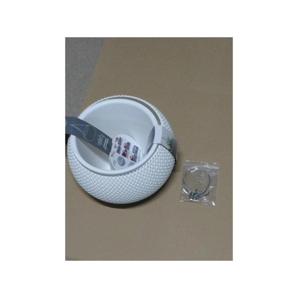 Witte kunststof hangende Splofy bloempotten/plantenpotten 29 cm inclusief metalen haak. Kras en stootvaste ophang bloempotten/plantenbakken met de uitstraling van zachte, grof gebreide wol. De hangende bloempotten/plantenpotten zijn uitgerust met een binnenbak en een metalen haak. De ophangpotten zijn geschikt voor binnen en buiten gebruik. Serie: Splofy round ws. Formaat: diameter: ca 29 cm. Hoogte: ca 19,5 cm. Inhoud: 3,9 liter. Materiaal: kunststof. Tuin/huisdecoratie hang bloempot/plantenbak.