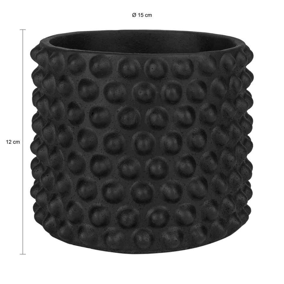 Deze bloempot van beton heeft een diameter van 15 centimeter. Dit maakt de pot erg geschikt voor een binnenpot van 12 centimeter. Dit is een mooi subtiel formaat. Hierdoor is de zwarte bloempot ook goed te combineren met andere bloempotten. Door het opvallende ontwerp valt de bloempot direct op, maar door het subtiele formaat wordt het effect iets ingeperkt. Zo is deze QUVIO bloempot perfect in balans. Weet jij al welke plant een plekje krijgt in deze bijzondere bloempot?