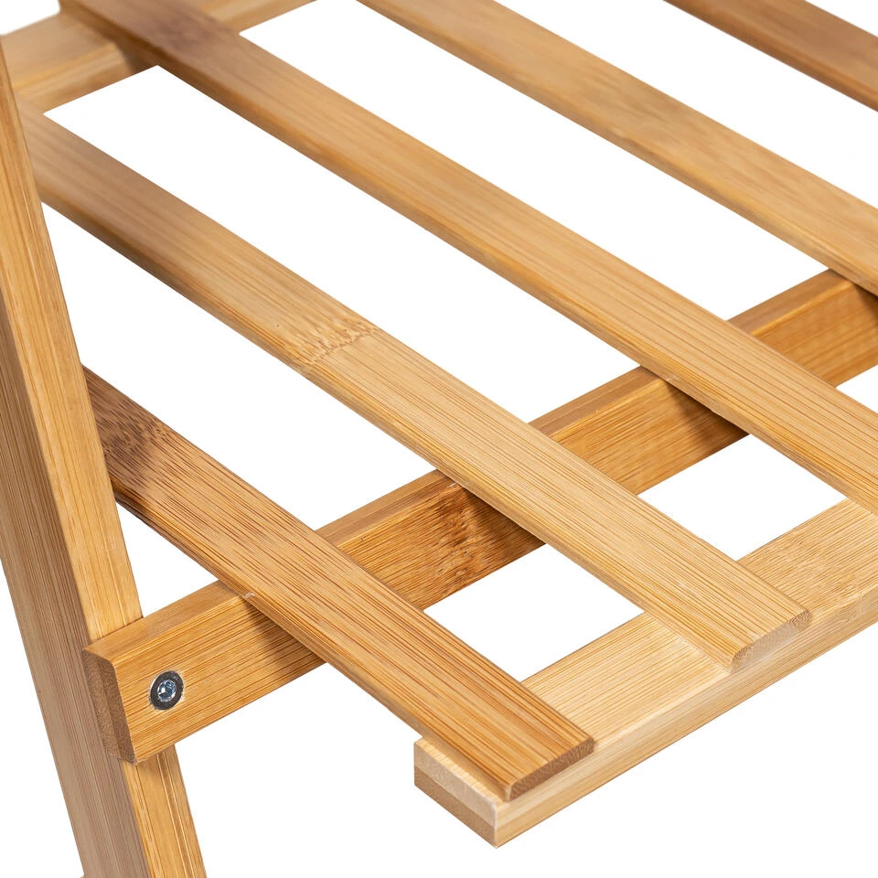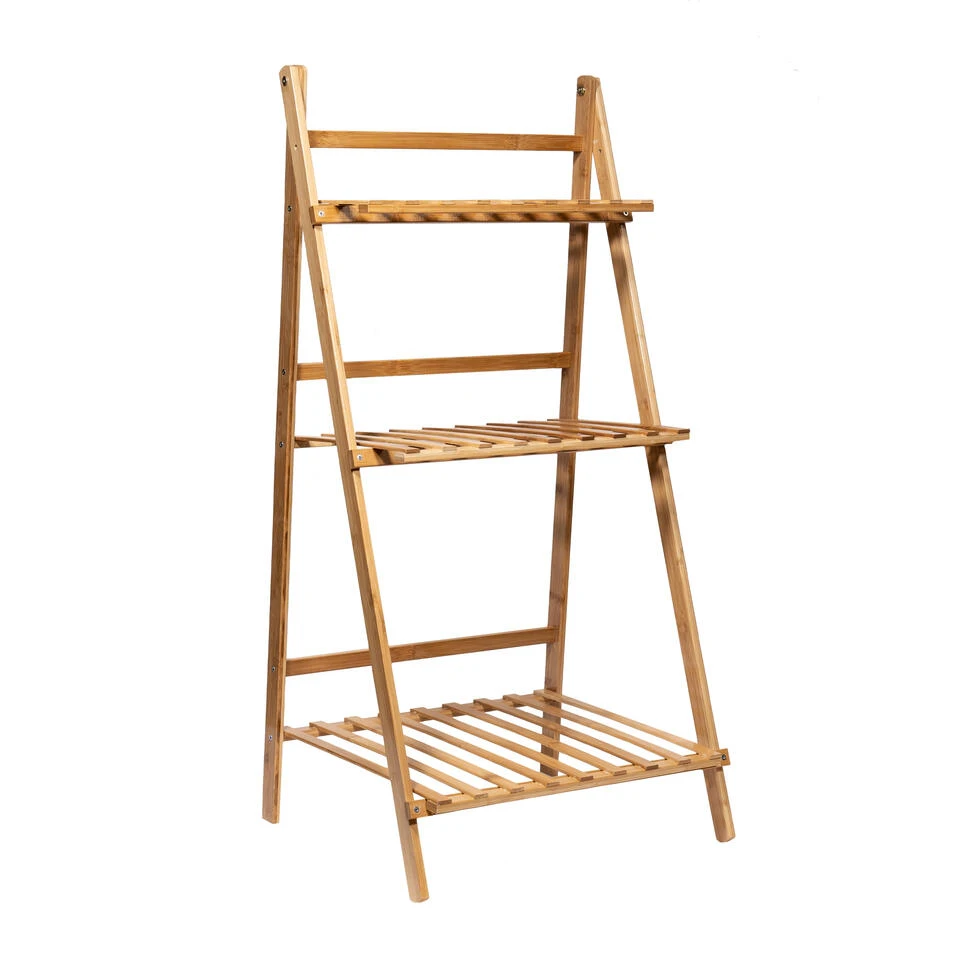 In principe is de plantentrap een plantentrap voor binnen, maar het product kan ook prima in de tuin worden gebruikt. Het plantenrek heeft in totaal 3 treden. Het opbergrek is gemaakt van bamboe. Dit heeft onder andere tot gevolg dat het rek zeer stabiel en erg stevig is. Je kunt dus zonder je zorgen te maken ook relatief zware bloempotten en planten op het rek plaatsen. De totale hoogte van het rek is 96 centimeter. De breedte is in totaal 50 centimeter en de diepte van het plantentrapje is 40 centimeter. Het heeft een bruine kleur, wat bij een product van bamboe dat bedoeld is voor planten erg toepasselijk is.