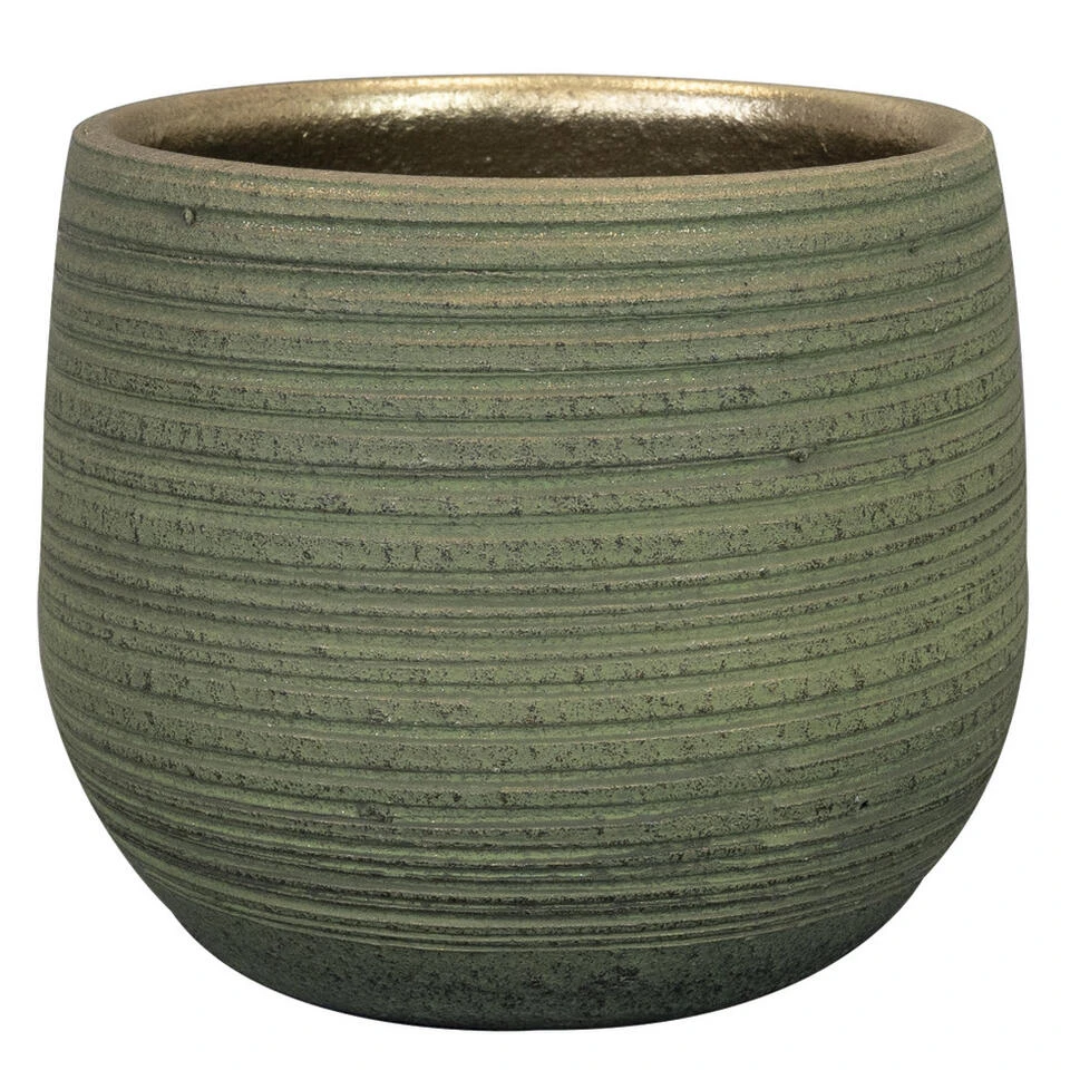 Plantenpot/bloempot van keramiek in de kleur donkergroen met een stripes relief patroon. Diameter 15 cm en hoogte 13 cm. Stijlvolle bloempotten voor binnen gebruik. Serie: Lydia. De zeer stijlvolle pot met prachtig patroon aan de buitenzijde is met de hand gemaakt. Derhalve is geen pot exact hetzelfde en hebben de bloempotten een echt karakter. Tip: zet een schotel onder een bloempot van klei of gebruik een binnenpot/hoes of coating om eventueel lekken tegen te gaan. Potten van gebakken klei zijn niet altijd 100% gegarandeerd waterdicht.