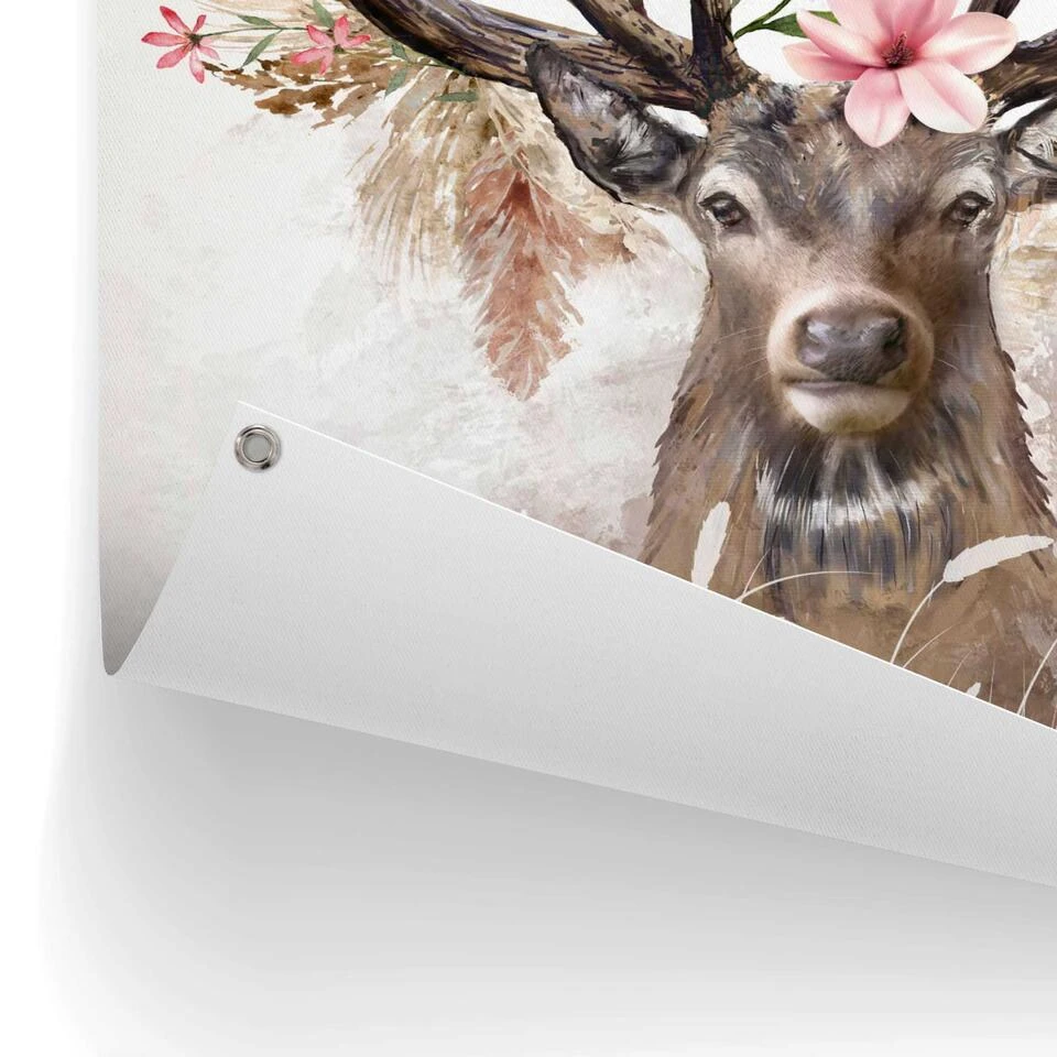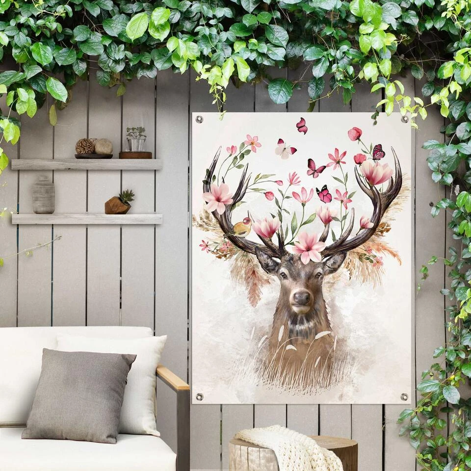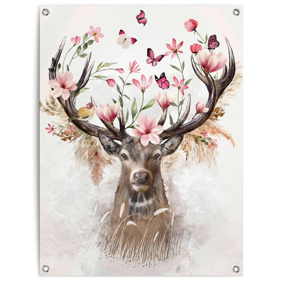Tuinposter Hert In Bloemen 80×60 Cm Roze