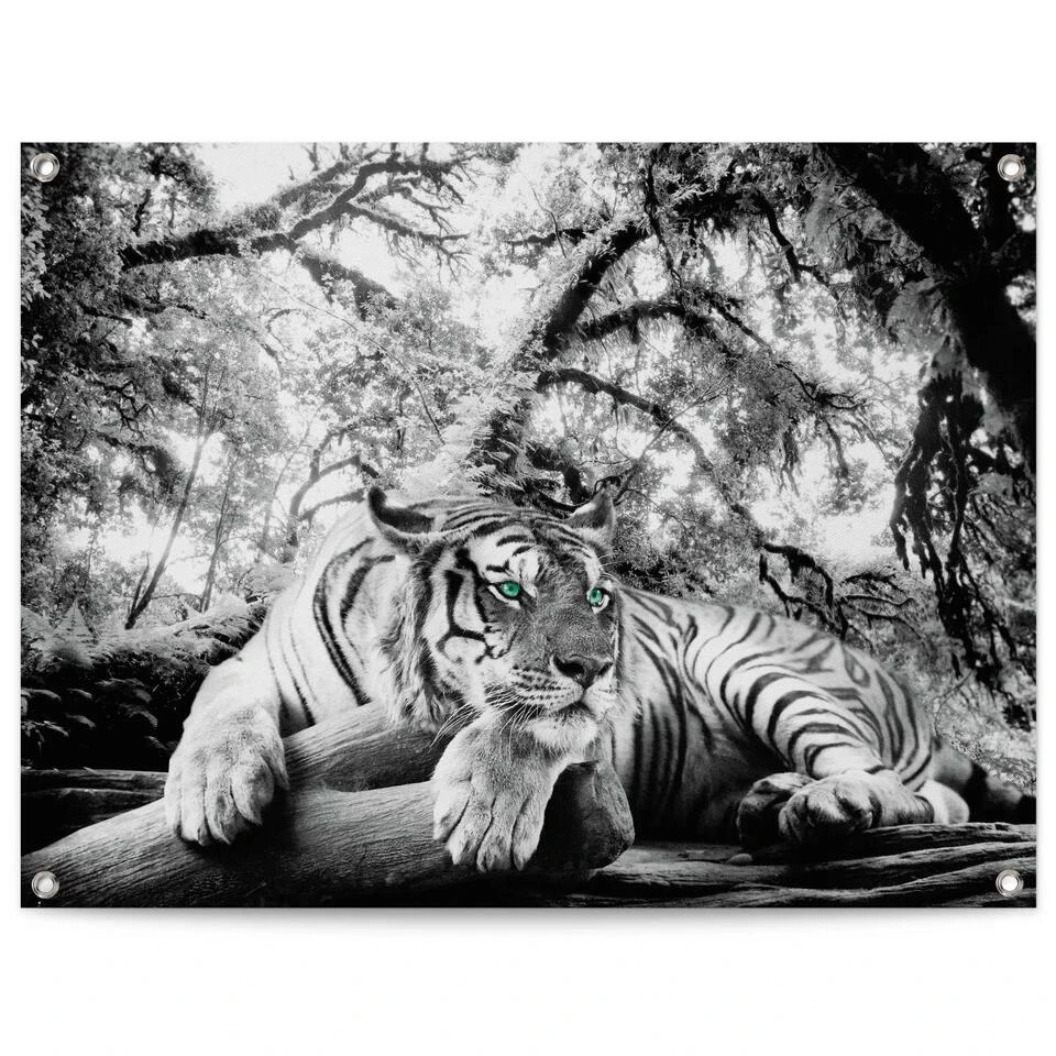 Tuinposter Tijger 60×80 Cm Zwart-Wit