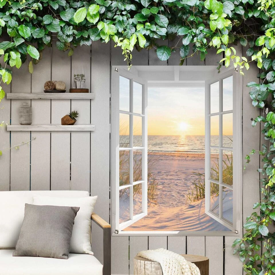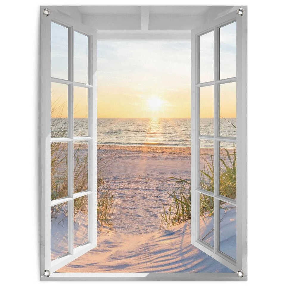 Tuinposter Zonsondergang Door Het Raam 80×60 Cm Beige