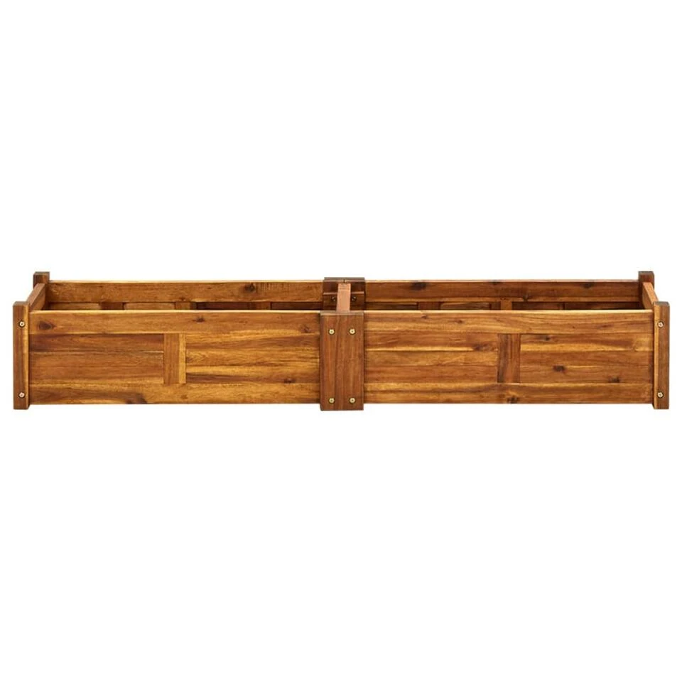 Deze plantenbak is gemaakt van hoogwaardig acaciahout waardoor hij erg stevig en duurzaam is. De plantenbak is ook afgewerkt met olie om het hout een warme, rustieke kleur te geven. De plantenbak heeft een lattenbodem, waardoor de grond vastgehouden wordt maar het overtollig water kan wegsijpelen.