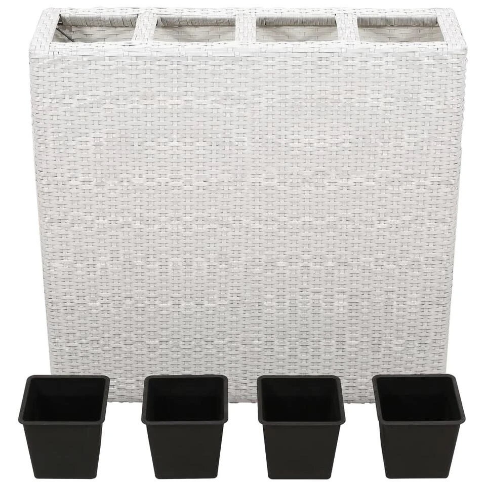 Deze plantenbak is gemaakt van duurzaam, waterbestendig rattan en is de perfecte aanvulling op je buitenruimte. De strakke weefstructuur zorgt voor een gladde afwerking en goede stabiliteit. De plantenset bestaat uit 4 kunststof potten waardoor de set een lange levensduur heeft. Je kunt allerlei levendige groene planten en bloemen netjes in de potten plaatsen. De levering bevat 1 plantenbak en 4 verwijderbare potten met dezelfde afmetingen.